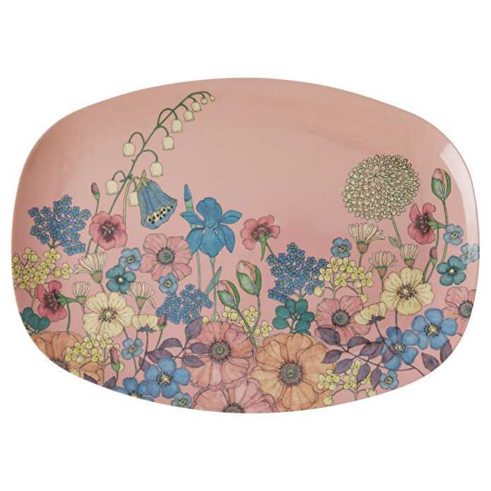 Rice Melamin Dikdörtgen Tabak - Çiçek Kolajı