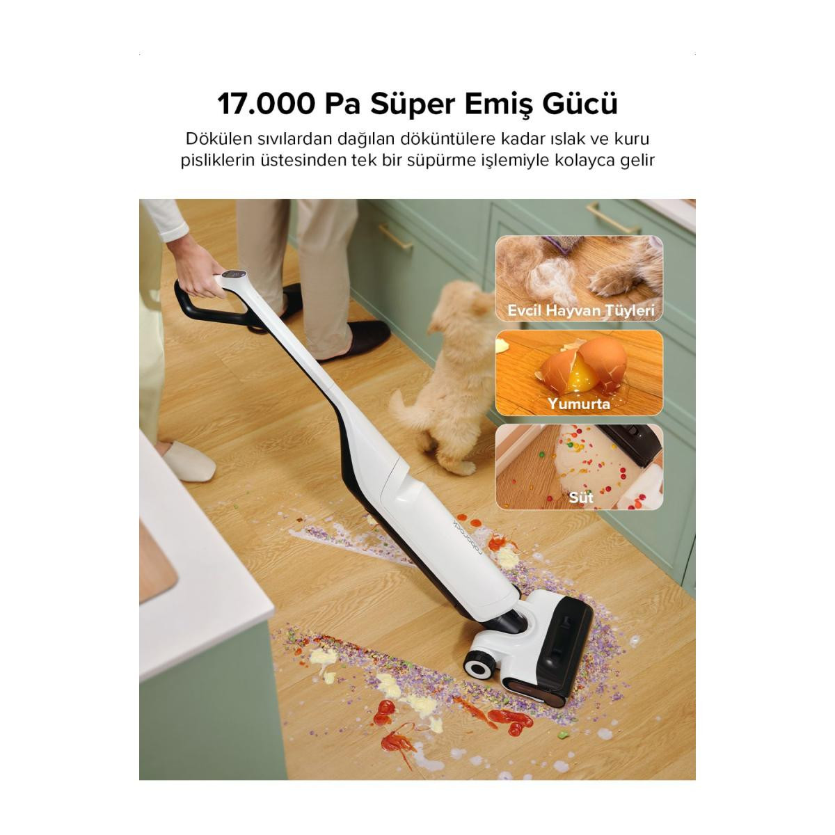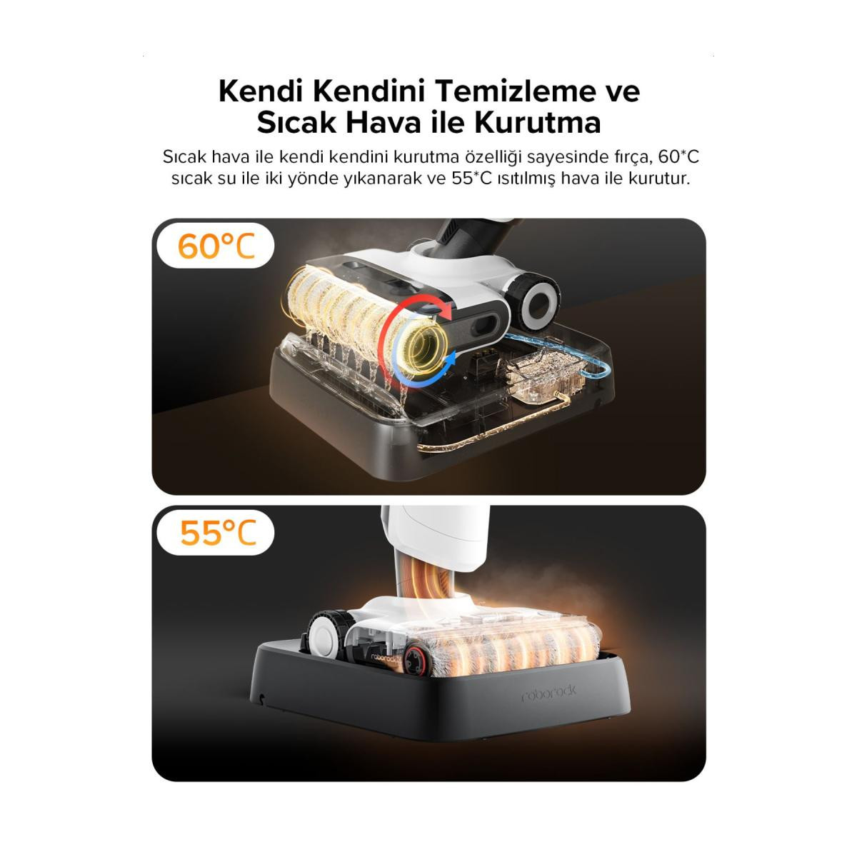 FlatReach™ Teknolojisi 17000Pa'lık güçlü emiş Islak ve kuru kirleri tek seferde temizler Roborock RevoBrush™ 2.0 Sıcak suyla kendi kendini temizleme Otomatik fırça kurutma Kenardan kenara temizlik SlideTech Otomatik Tekerlekler DirTect™ akıllı sensörlü adaptif temizlik Akıllı uygulama ve sesli uyarılar.