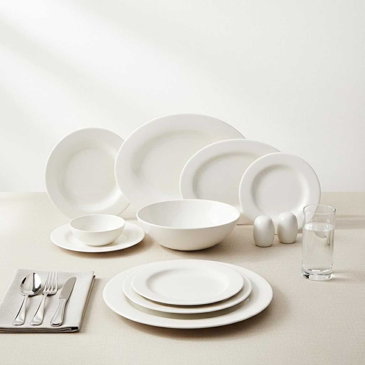 Bu kapsamlı yemek takımı, bir sofrada ihtiyaç duyabileceğiniz tüm servis parçalarını içermektedir: