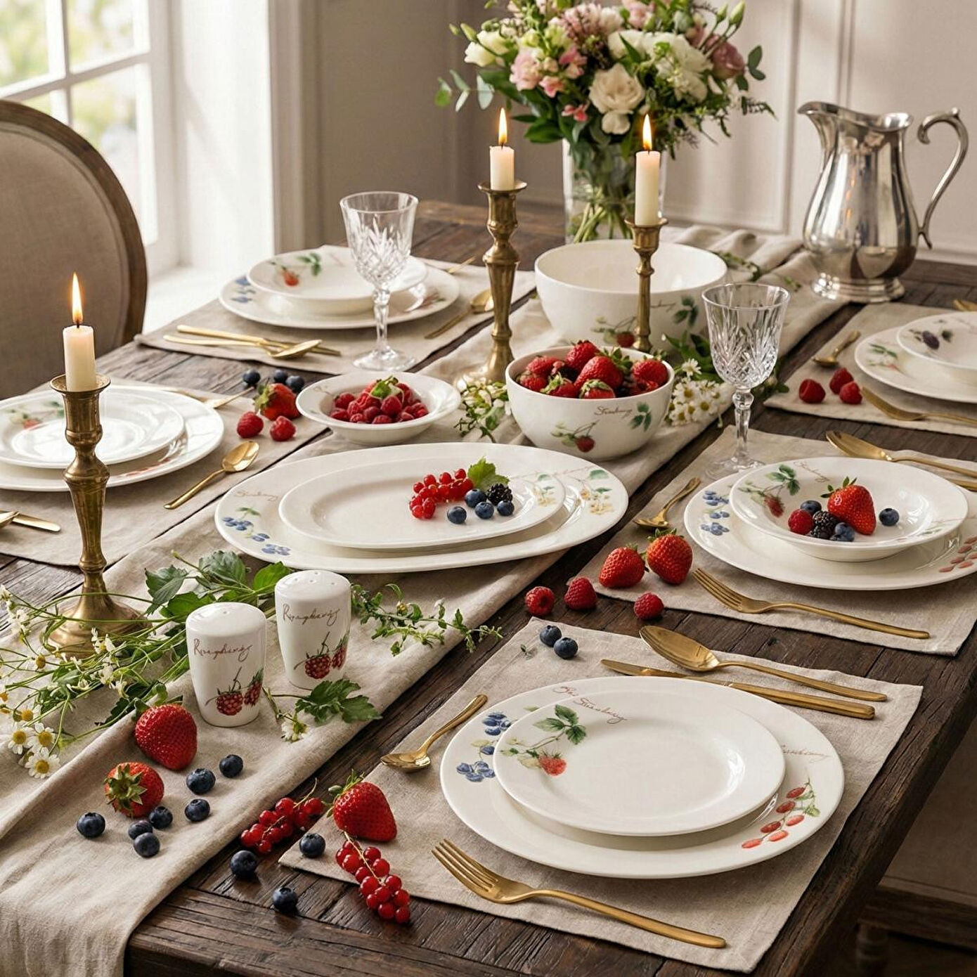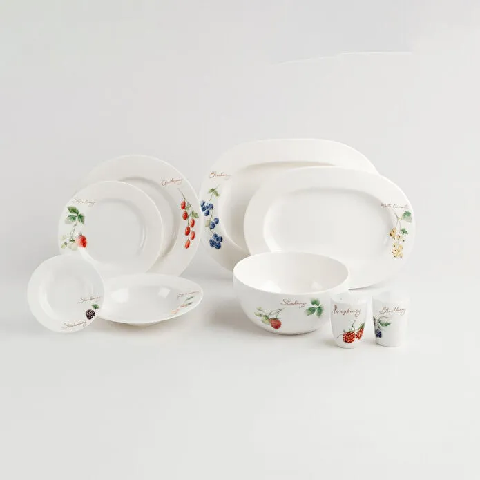 Royal Canterbury Very Berry Yemek Takımı, porselenin asaletini doğadan ilham alan nazik meyve ve floral desenlerle buluşturuyor. 12 kişilik tam donanımlı içeriği ve 53 parçalık geniş setiyle bu koleksiyon, sofralarınıza hem taze bir enerji hem de sofistike bir şıklık katar. Beyaz zemin üzerindeki zarif detayları sayesinde her bir öğünü özel bir seremoniye dönüştürmek için tasarlandı.
