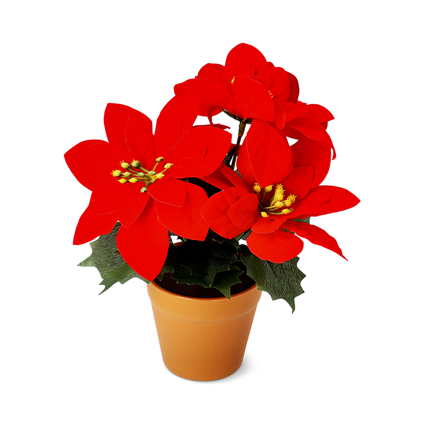 Saksıda Yapay Yılbaşı Çiçeği, sezon boyunca tazeliğini koruyan pratik bir dekoratif çözümdür. Klasik kırmızı poinsettia çiçekleriyle, geleneksel yılbaşı atmosferini modern bir sadelikle birleştirir. Bakım gerektirmeyen yapısı sayesinde, tatil dekorasyonunuzu kolayca tamamlar ve her yıl yeniden kullanılabilir. Evinize veya ofisinize doğal bir dokunuş katmak için ideal bir seçimdir; şenlikli dönem boyunca iç mekânlara canlılık ve zarafet kazandırır.