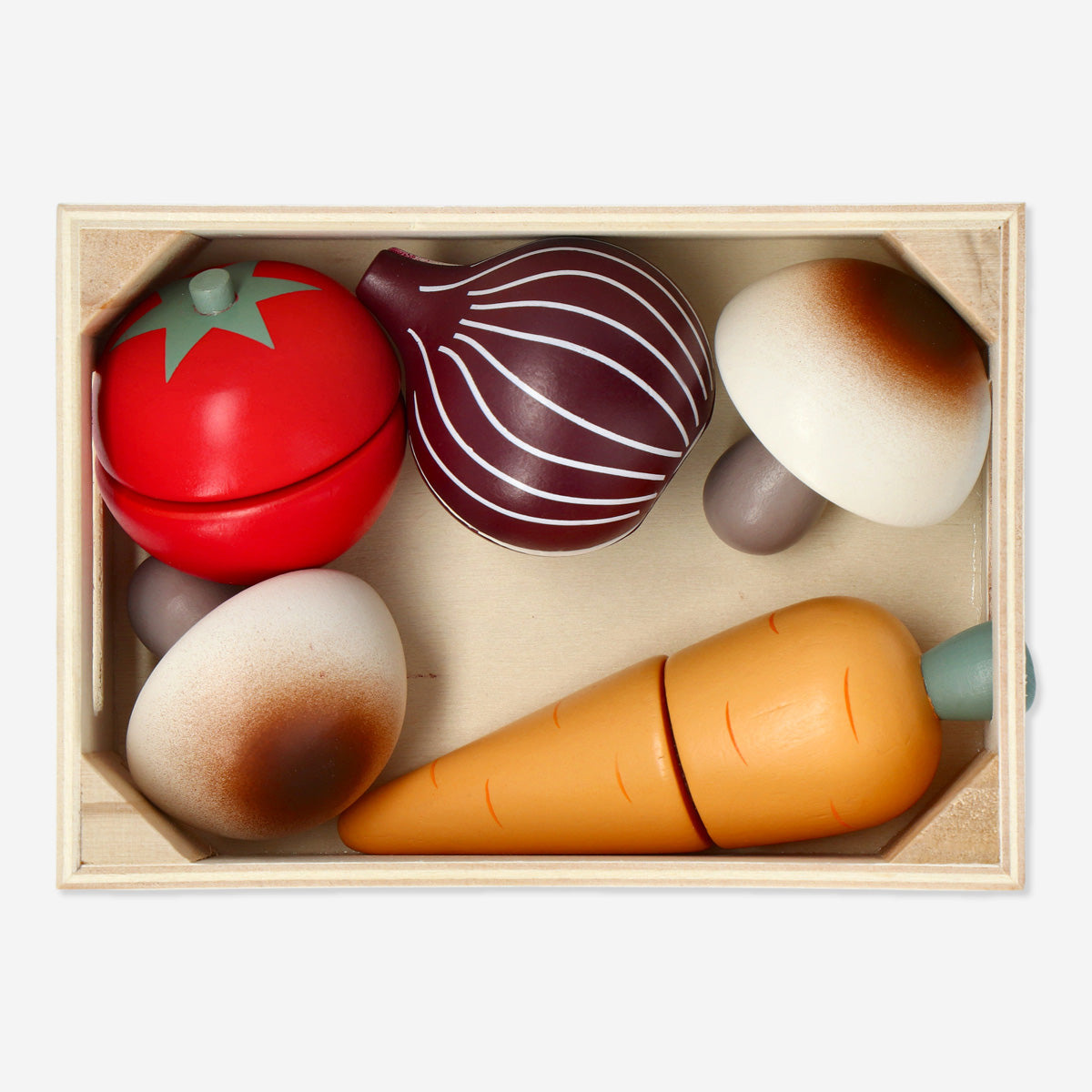 Çocuğunuzun hayal gücü dolu oyun zamanını bu sevimli sebze kutusu oyun seti ile geliştirin. Ahşaptan üretilen bu renkli set, havuç, domates, mantar ve soğan olmak üzere dört gerçekçi sebze parçası içerir. Her parça, detaylara dikkat edilerek tasarlanmıştır ve yaratıcılığı ile rol yapma eğlencesini teşvik eder. Sebzeler, 14 x 5 x 10 cm boyutlarındaki ahşap bir kutuda düzenli bir şekilde paketlenmiştir; bu da saklamayı ve taşımayı kolaylaştırır. Hayali yemek yapma ve market alışverişi için ideal olan bu sebze kutusu oyun seti, her oyun mutfağına harika bir eklemektedir.