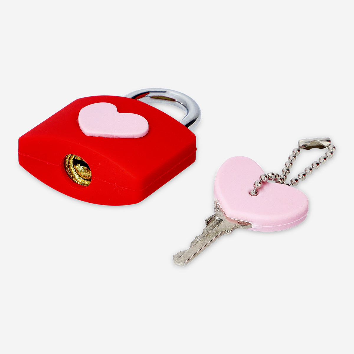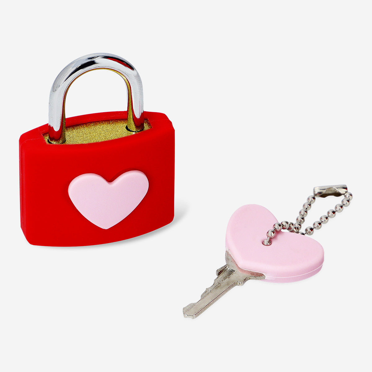 Canlı kırmızı rengi ve açık pembe kalp detayları, kilide eğlenceli ve romantik bir hava katar. Güvenilir yapısı güvenlik sağlarken, eşleşen anahtar setiyle tamamlanır, böylece eşyalarınıza yalnızca siz erişebilirsiniz. Hem işlevsel hem de estetik bir aksesuar olan bu asma kilit, hem pratik hem de sevimli bir güvenlik çözümü sunar.