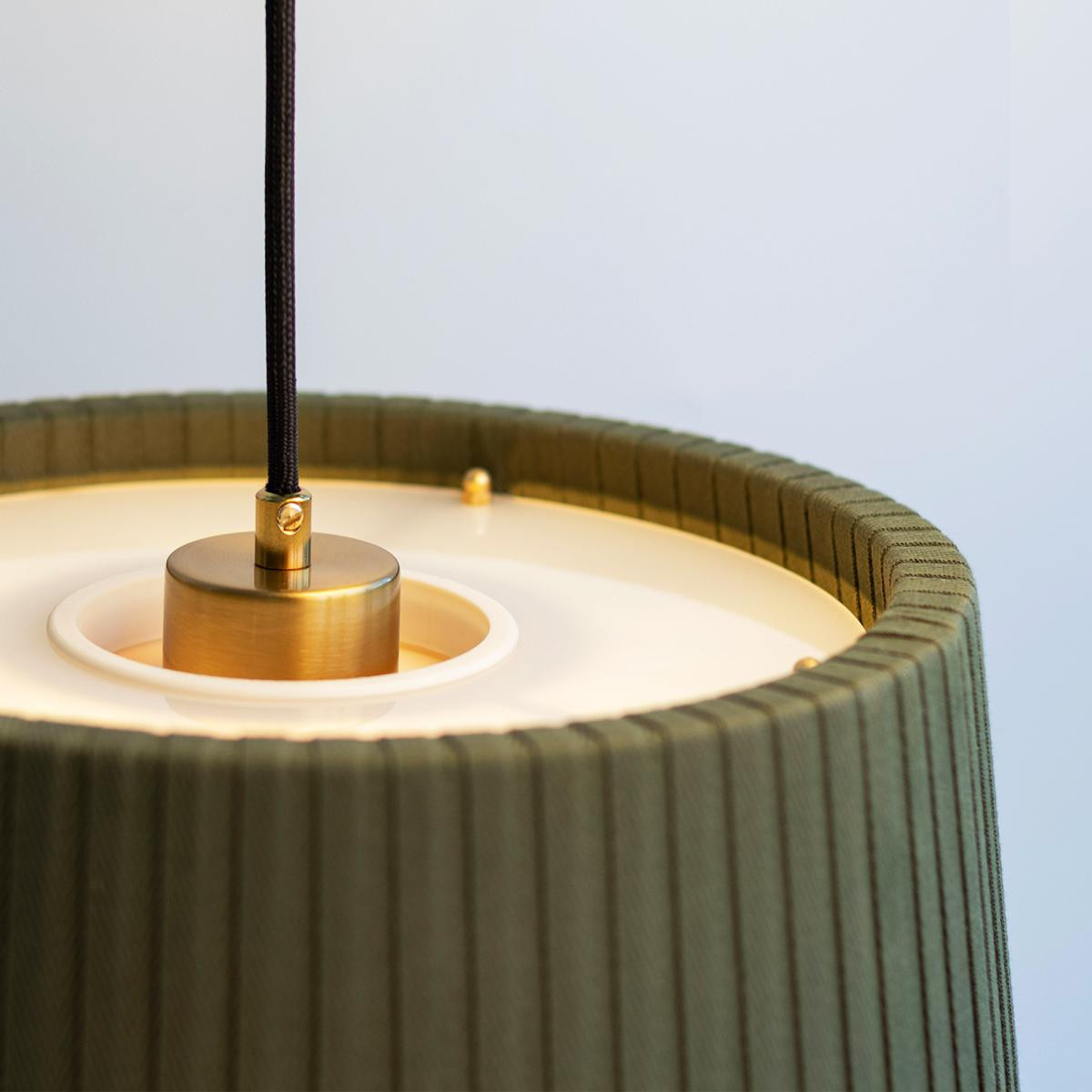 - Malzeme: Kumaş (%100 pamuk), Alt yüzey akrilik difüzör - Ölçüler |Small: ∅ 35 cm, yükseklik: 19 cm - Montaj: ∅ 10 cm pirinç kaplama rozans ile tavana monte edilir. - 150 cm uzunlukta siyah renkte kumaş kablo ile gönderilmektedir. - Duy Tipi: E27 - Işık Kaynağı: 13 watt’a kadar LED ampuller ile kullanılması tavsiye edilir. (Ampul pakete dahil değildir.)