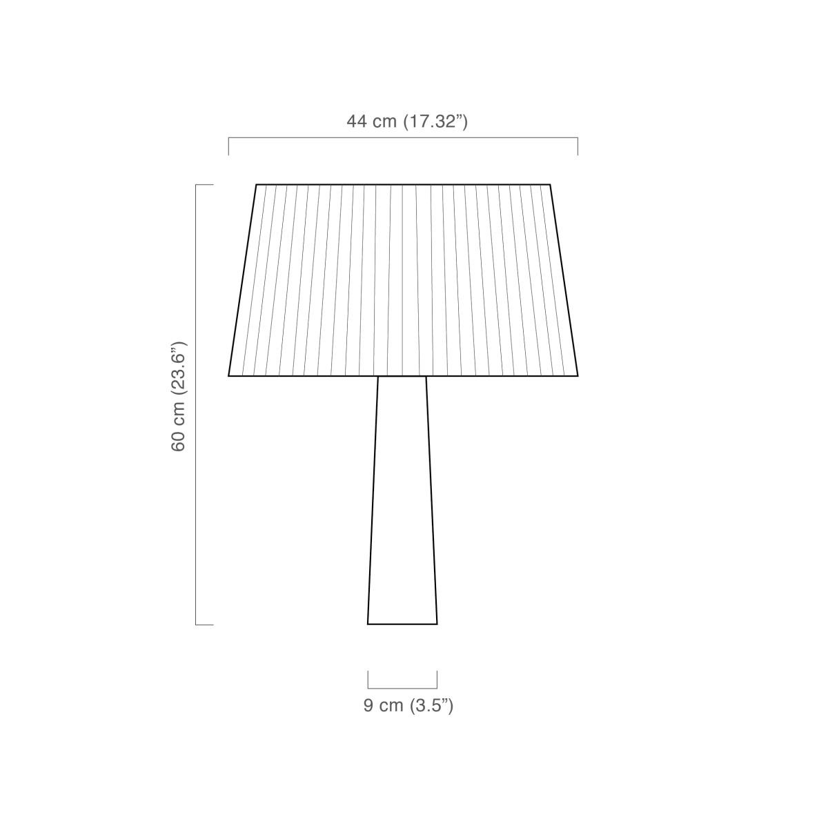 - Tamamen el işçiliği ile İstanbul'da üretilir. - Malzeme | Başlık: Kumaş (%100 pamuk), pirinç detaylı akrilik difüzör - Malzeme | Taban: Masif Ahşap - Kablo: 200 cm, siyah, arapuar aç/kapa anahtarlı - Duy: E27 - Işık Kaynağı: 13 watt’a kadar LED ampuller ile kullanılması tavsiye edilir. (Ampul pakete dahil değildir.) - Ölçüler | Medium: ∅ 44 cm, yükseklik: 60 cm