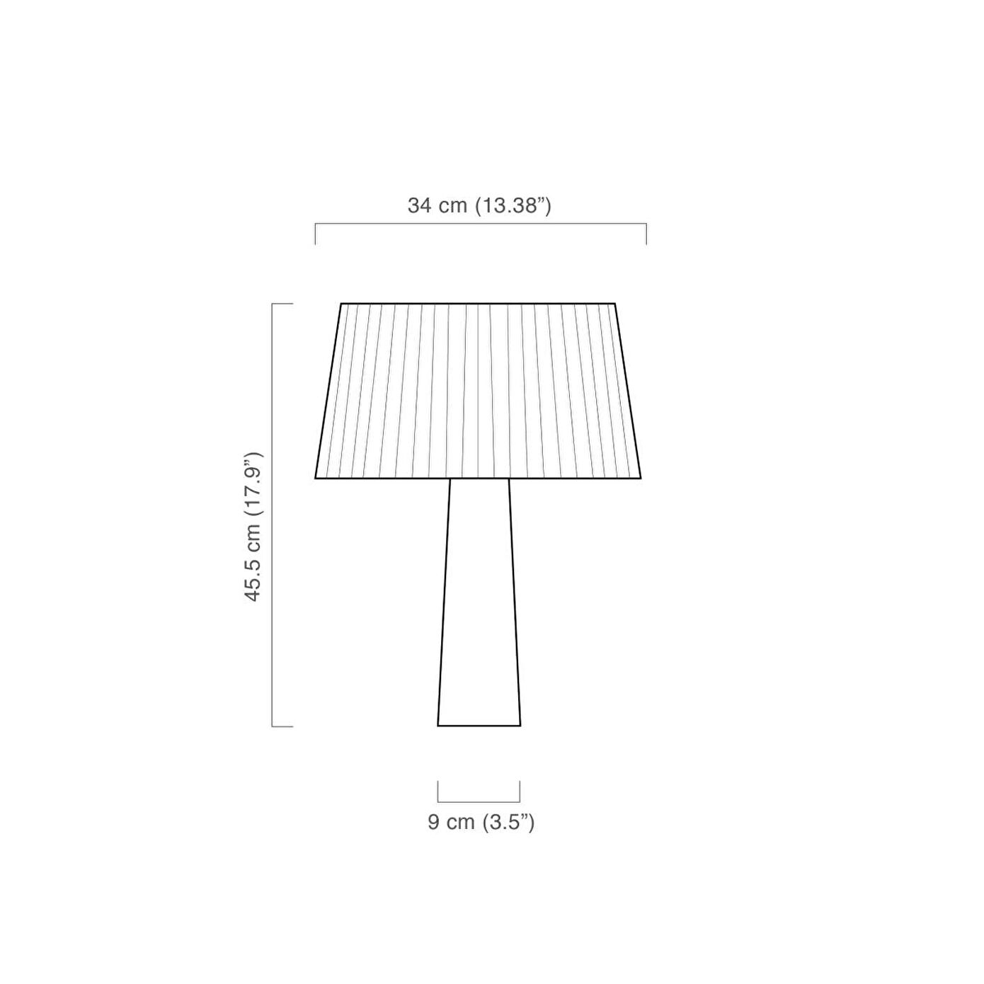 - Tamamen el işçiliği ile İstanbul'da üretilir. - Malzeme | Başlık: Kumaş (%100 pamuk), pirinç detaylı akrilik difüzör - Malzeme | Taban: Masif Ahşap - Kablo: 200 cm, siyah, arapuar aç/kapa anahtarlı - Duy: E27 - Işık Kaynağı: 13 watt’a kadar LED ampuller ile kullanılması tavsiye edilir. (Ampul pakete dahil değildir.) - Ölçüler | Small: ∅ 34 cm, yükseklik: 45.5 cm