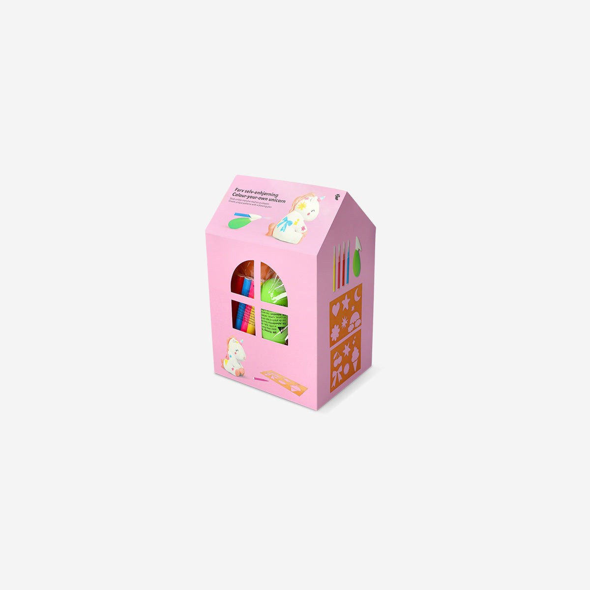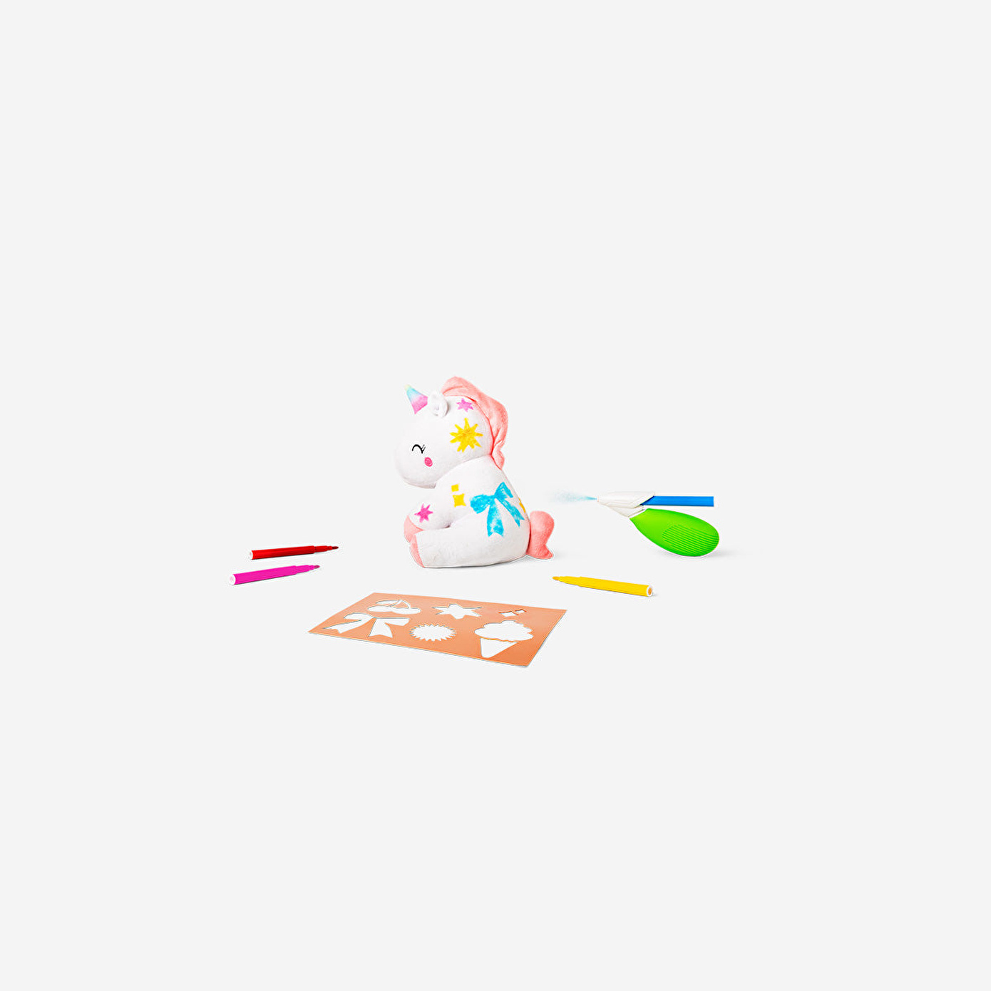 Hayal gücünü serbest bırakın! Bu sevimli Boyanabilir Unicorn Peluş Oyuncak, çocuklara kendi tasarımlarını yaratma fırsatı sunar. Set içerisinde unicorn peluş oyuncak, 4 farklı renkli kalem, şablonlar ve yardımcı aksesuarlar bulunur. Çocuklar diledikleri gibi şekiller çizerek, unicornlarını eşsiz desenlerle süsleyebilir.
