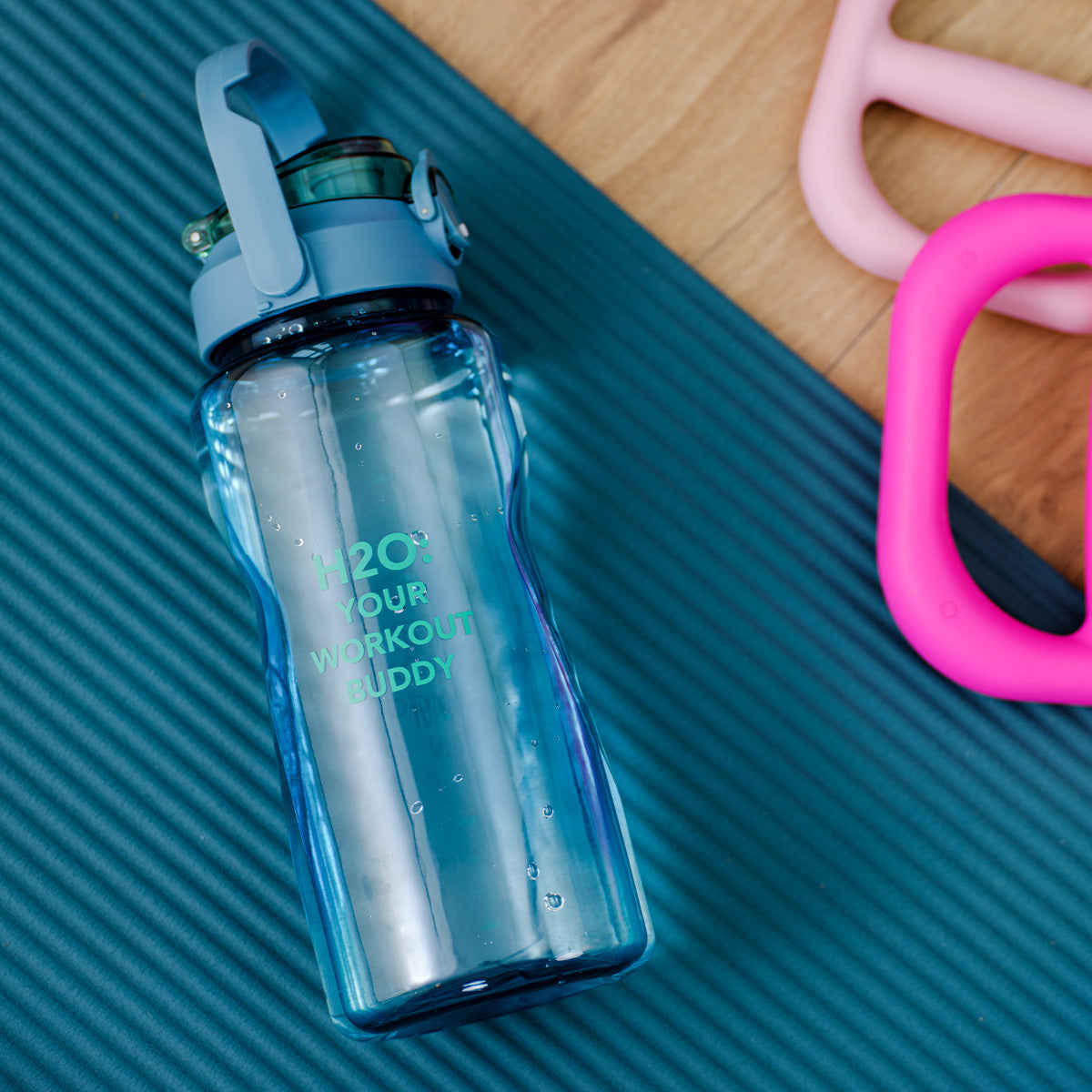 Motivasyon Sloganlı Mavi Matara 2 L, gıdaya uygun malzemelerden üretilmiştir ve 40 santigrat dereceye kadar içecekler için güvenlidir. Hem spor şişesi hem de günlük su matarası olarak kullanılabilir, şık tasarımıyla da her türlü aktiviteye uyum sağlar. Bu şişe, sizi gün boyu taze ve enerjik tutarken, su içmeyi daha motive edici bir hale getirir.