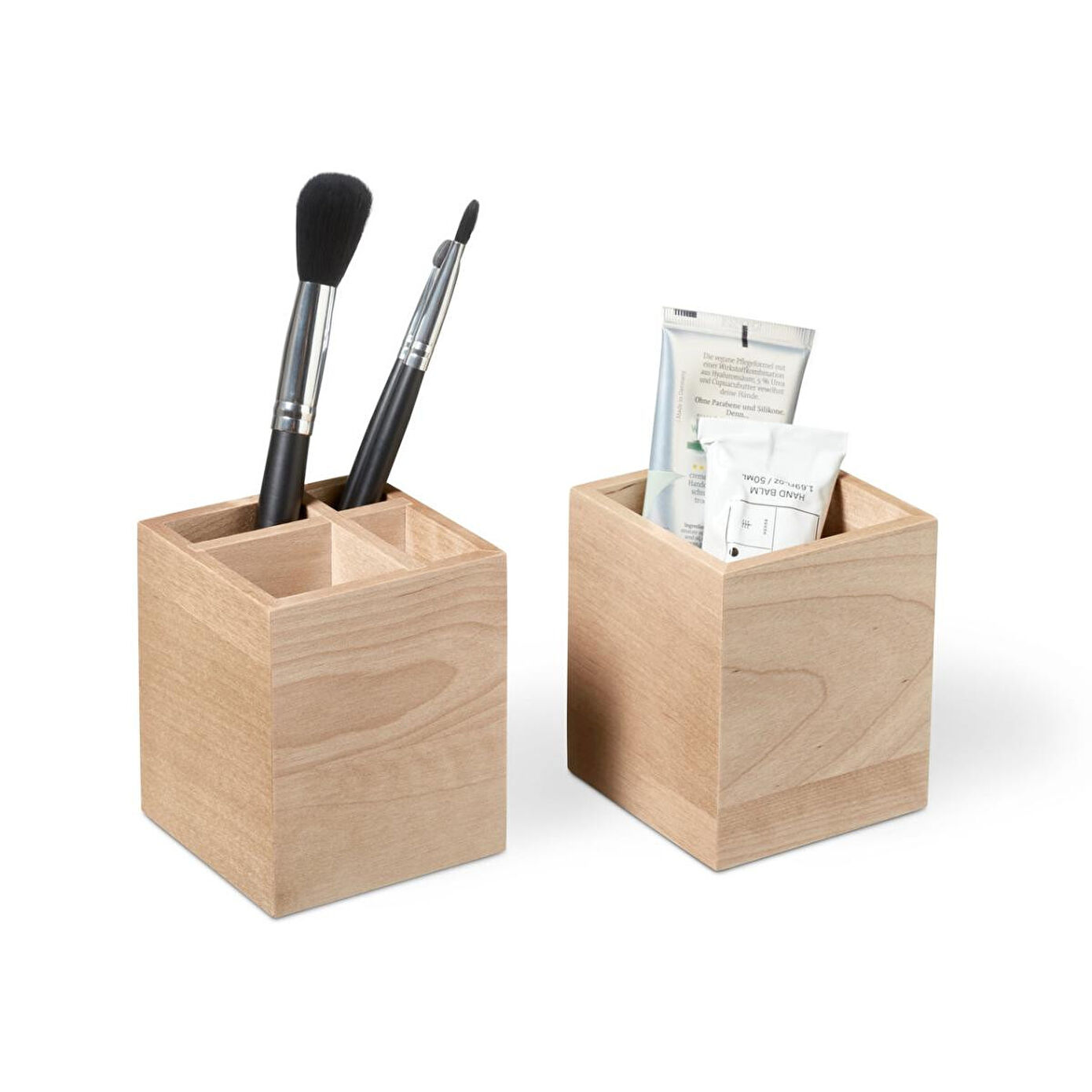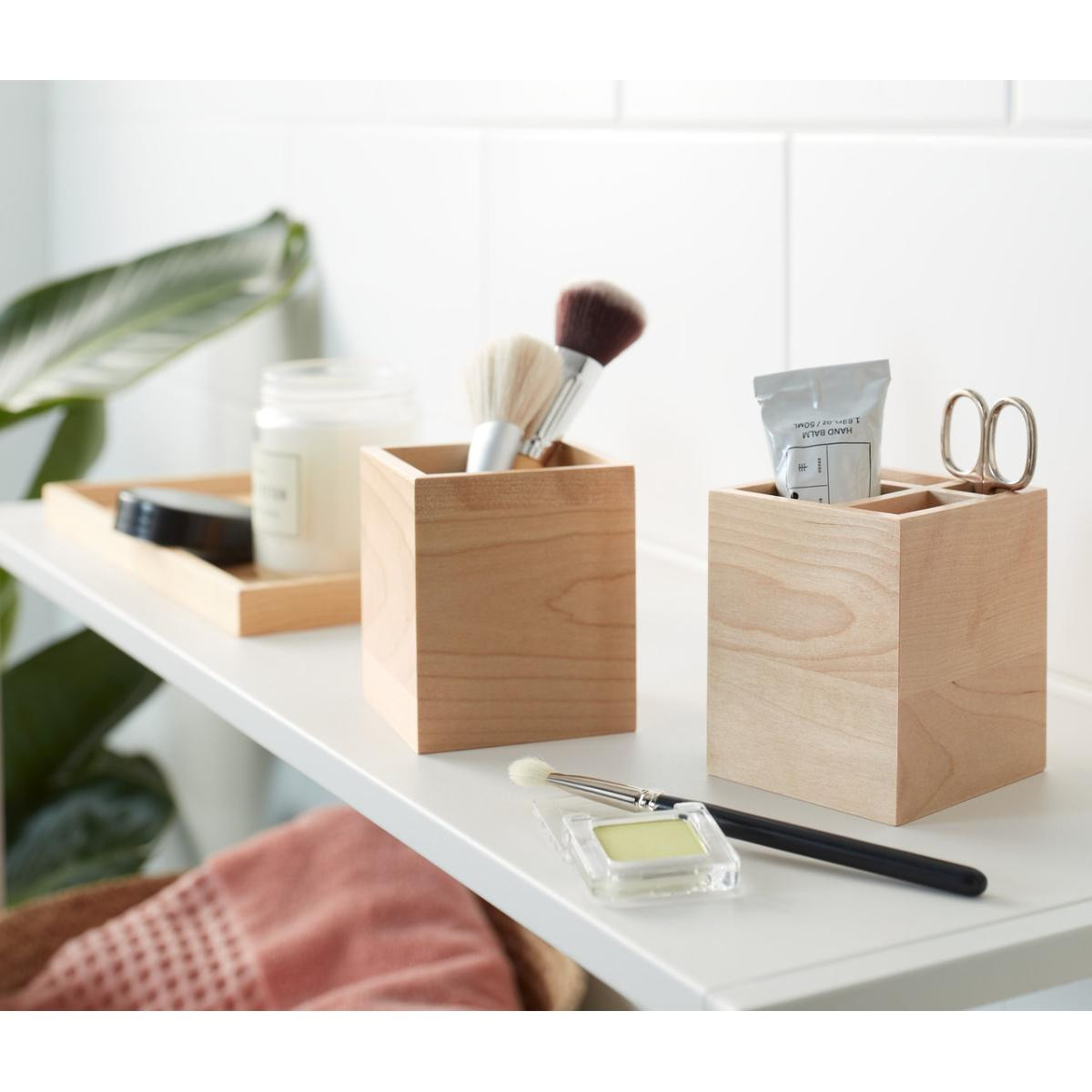 Çok yönlü kullanılabilir 1 adet düzenleyici çıkartılabilir ayraçlı Örn. makyaj malzemelerini, aksesuarları, kozmetikleri düzenli şekilde saklar FSC® sertifikalı beyaz huş ahşabı Zararlı madde kontrolü yapılmıştır – harici, akredite kuruluşlar tarafından Renk Doğal beyaz huş rengi Malzeme FSC® sertifikalı beyaz huş ahşabı (betula pendula) Ölçüler G x Y x D her biri yakl. 8 x 9,5 x 8 cm Malzeme kalınlığı yakl. 0,6 cm