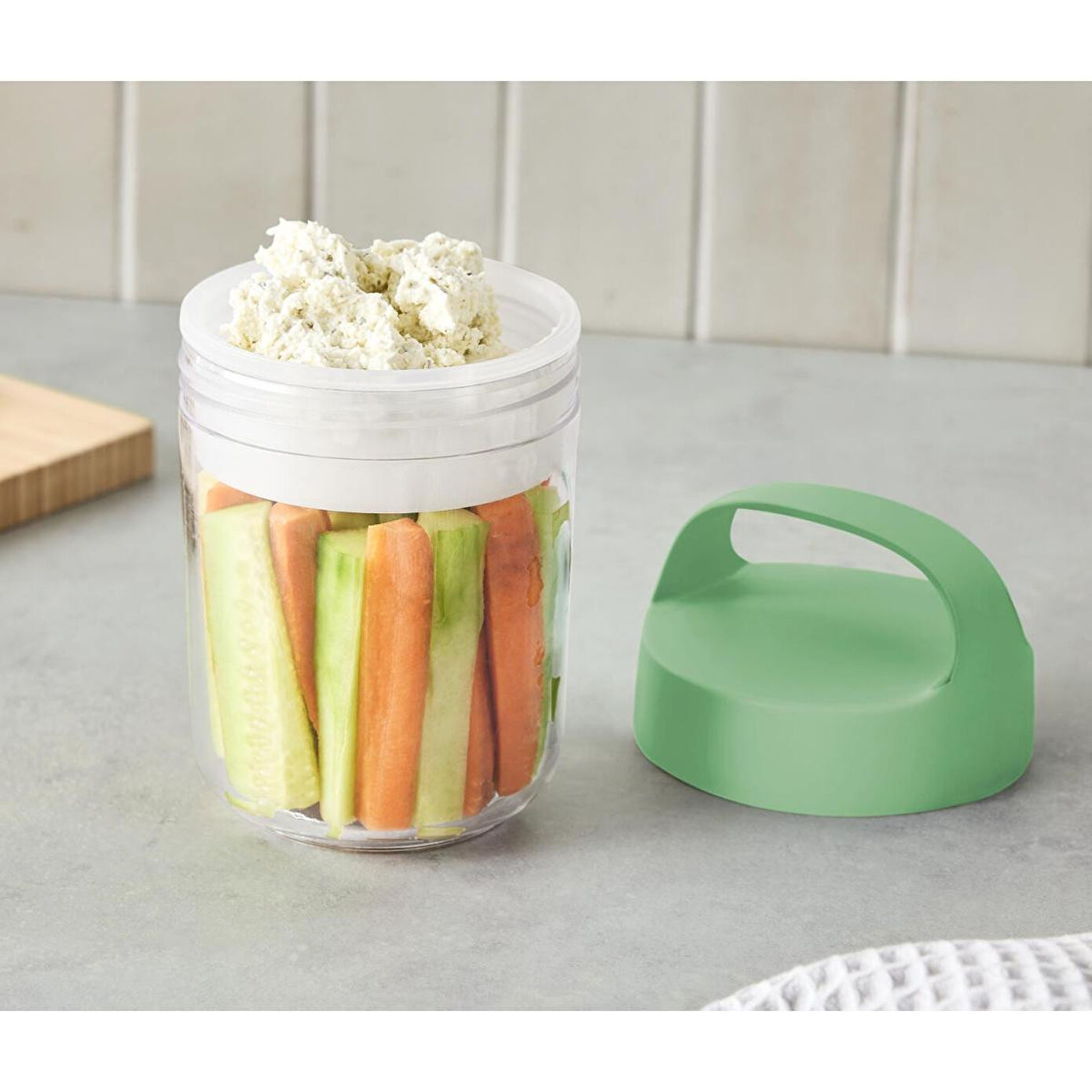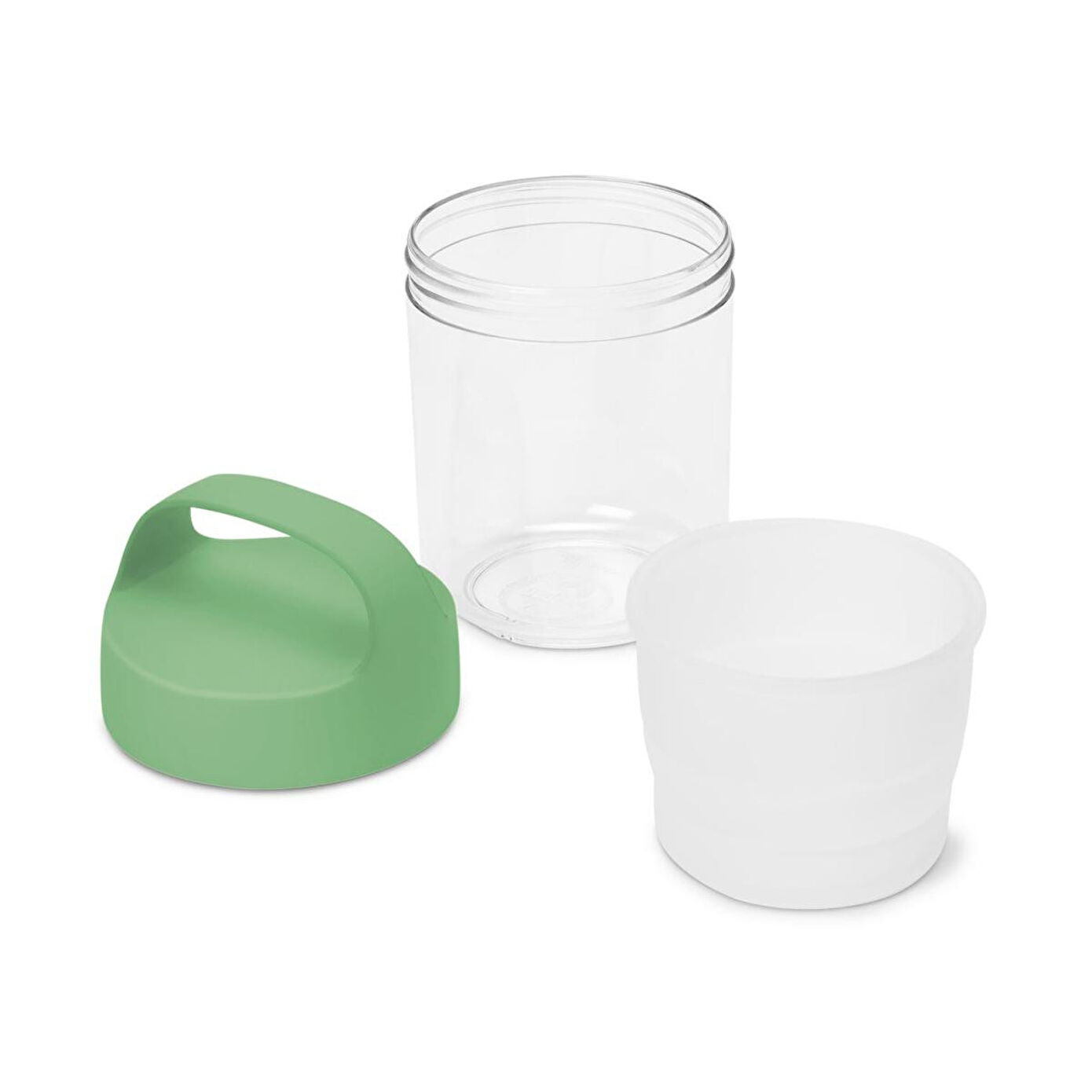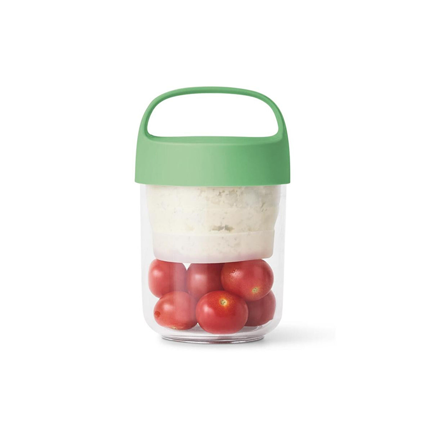 Tutamaklı Kap, Küçük Renk: Kapak yeşilKap saydam Malzeme: Kapak %100 polipropilenKap %100 stiren akrilonitril kopolimerİç kap %100 silikonTutamağın iç kaplaması termoplastik Ölçüler: Yüksekliği yakl. 14,5 cmÇapı yakl. 9 cm İçerik/Aksesuar: Kullanım talimatlarını çevrimiçi bulabilirsiniz Kullanım Uyarıları: -15 °C ile +80 °C arası sıcaklığa dayanıklıdır Yüksekliği ayarlanabilir silikon seperatör|%100 sızdırmaz: Sıvı ve katı yiyecekleri ayrı ayrı taşımak için|Yüksekliği ayarlanabilir, katlanabilir silikon seperatör gerektiğinde açılarak iki katına büyütülebilir|Silikon seperatör farklı yiyeceklerin birbirinden ayrı taşınmasını sağlar