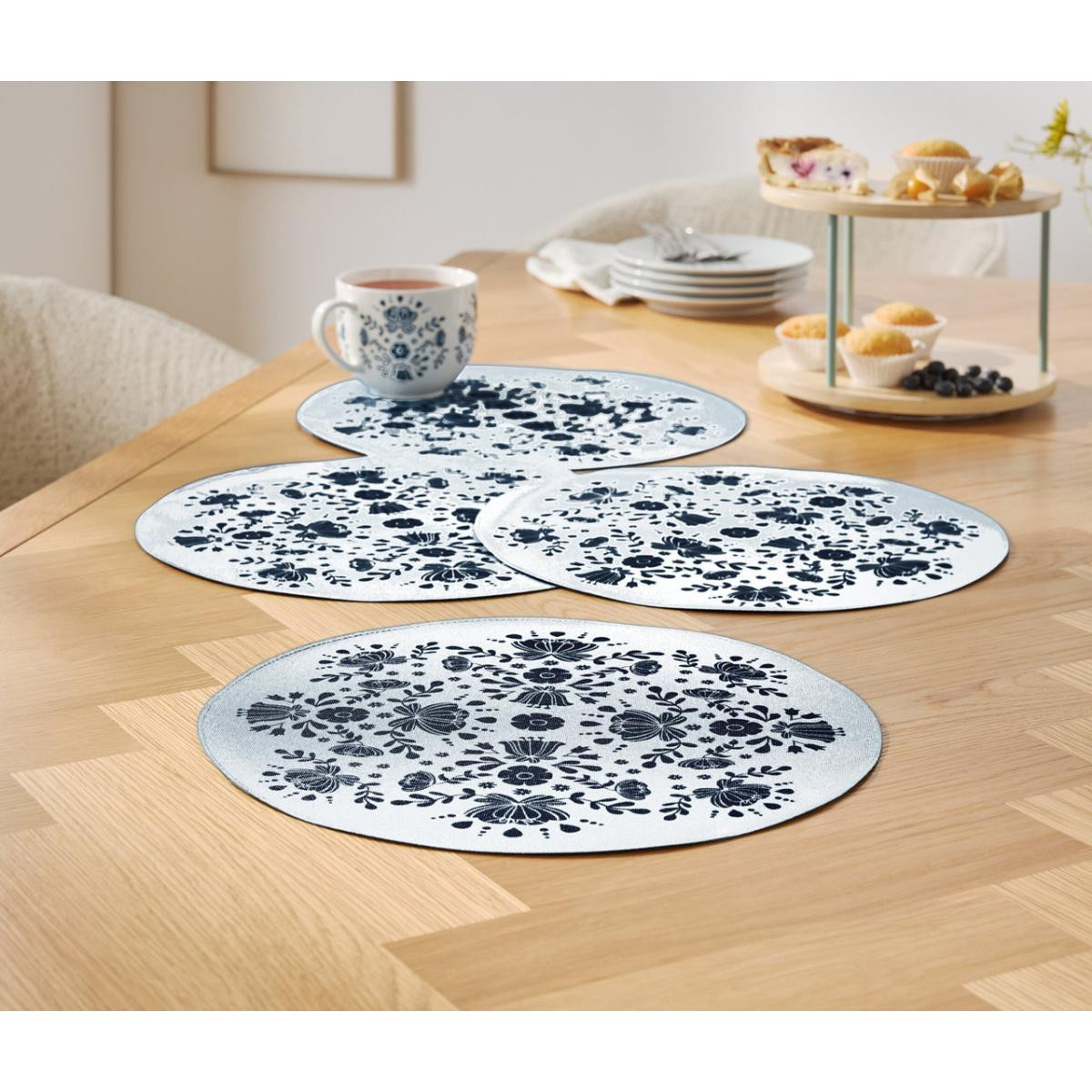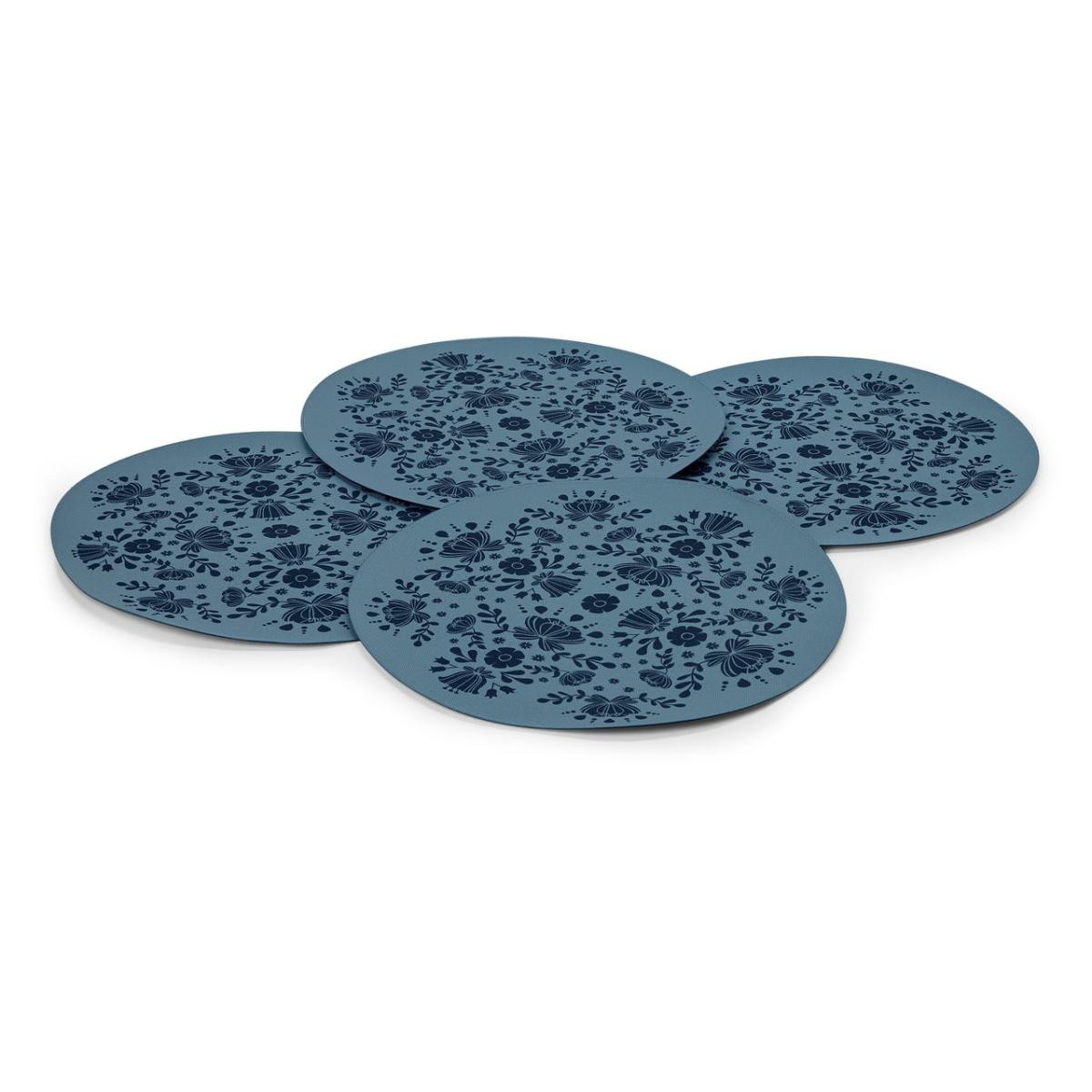 Mavi üzeri lacivert çiçek baskılı
