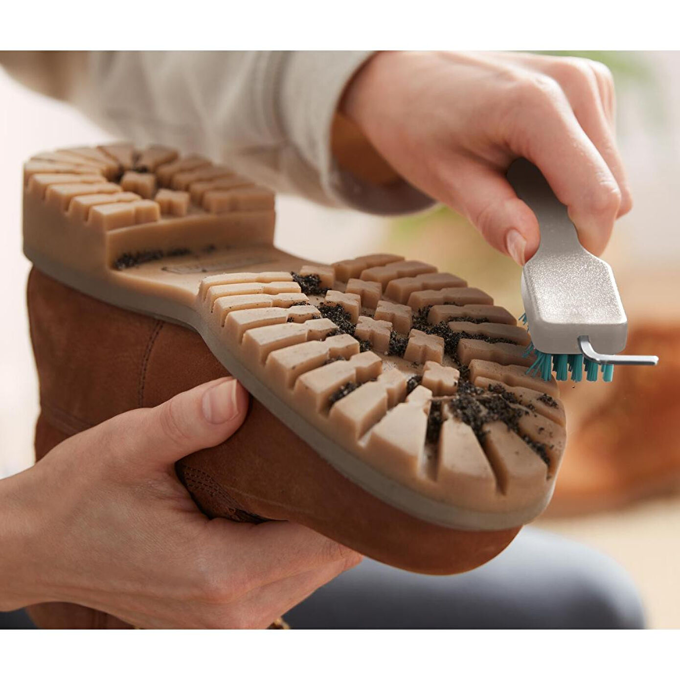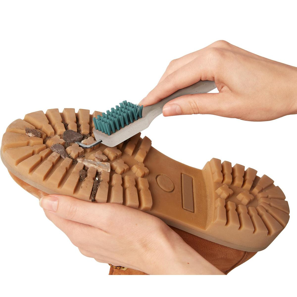 İri Kir ve Ayakkabı Tabanı Temizleme Fırçası Renk: Sap açık griFırça kılları turkuaz Malzeme: Sap %71 polipropilen (geri dönüştürülmüş), %29 polipropilenFırça kılları %100 polipropilenKanca 18/10 paslanmaz çelik Ölçüler: Kanca dahil toplam uzunluk yak.; 17,5 cmGörünen fırça kıllarının uzunluğu yakl.; 1 cm Derin profilli ayakkabılardan inatçı kirleri ve taşları çıkarır|Spor ayakkabı, bahçe ayakkabısı ve çizme için ideal|Ör.; taşları çıkarmak için metal kanca|Kir kalıntılarını temizlemek için fırça|Geri dönüştürülmüş plastik içerikli