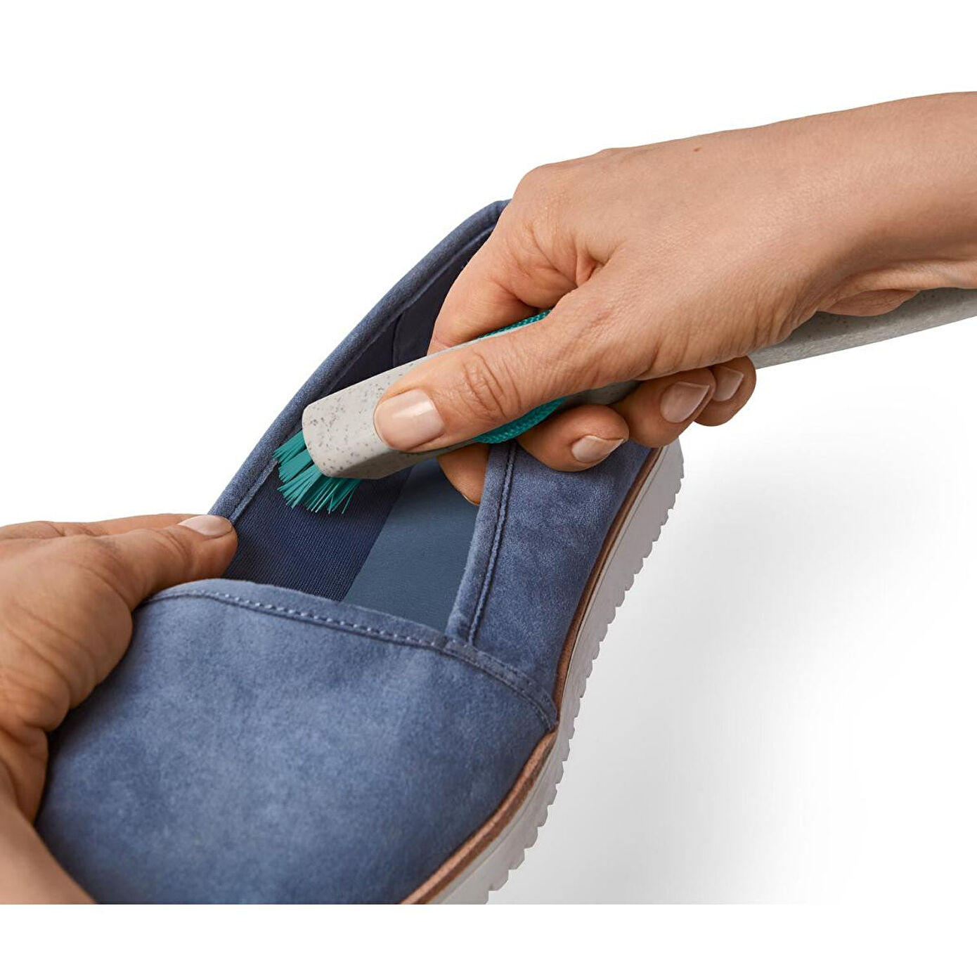 2'si 1 Arada İri Kir ve Ayakkabı Temizleme Fırçası Renk: Sap griFırça kılları mavi Malzeme: Fırça gövdesi %50 polipropilen (geri dönüştürülmüş), %50 polipropilenFırça kılları %100 polipropilenAskı %100 polyester Ölçüler: Sap uzunluğu yakl.; 25 cm, genişlik yakl.; 2-3 cmBüyük tarafta fırça kıllarının uzunluğu yakl.; 2,5 cm, küçük tarafta yakl.; 1,5 cm Ağırlık: Yakl.; 100 g 2 fırça yüzeyi – ayakkabının iç ve dış kısmını kolay temizlemek için|Kurumuş kiri temizlemek için sert fırça kılları|Ergonomik şekillendirilmiş sap |Askı delikli ve kordonlu|Geri dönüştürülmüş plastikli|Bu fırça, kaynakları korur.