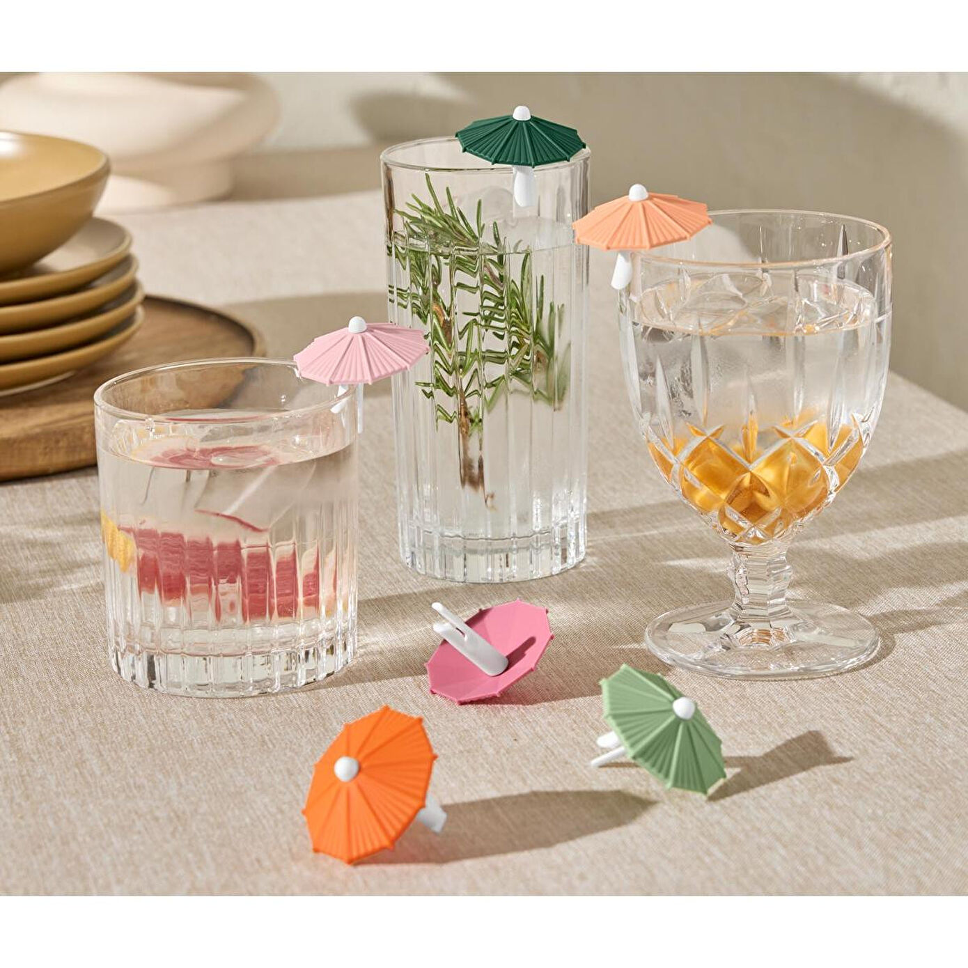 6 Adet Bardak İşareti Renk: 1 adet yeşil, 1 adet açık yeşil, 1 adet turuncu, 1 adet şeftali, 1 adet pembe, 1 adet gül kurusu Malzeme: Silikon ve polipropilen Ölçüler: Her birinin yüksekliği yakl. 4 cmŞemsiye genişliği yakl. 4,6 cm İçecekleri organize etmek ve ayırt etmek için yardımcı olurlar|Uzun ömürlü ve temizlemesi kolay|Kolayca bardağın kenarına takılabilir