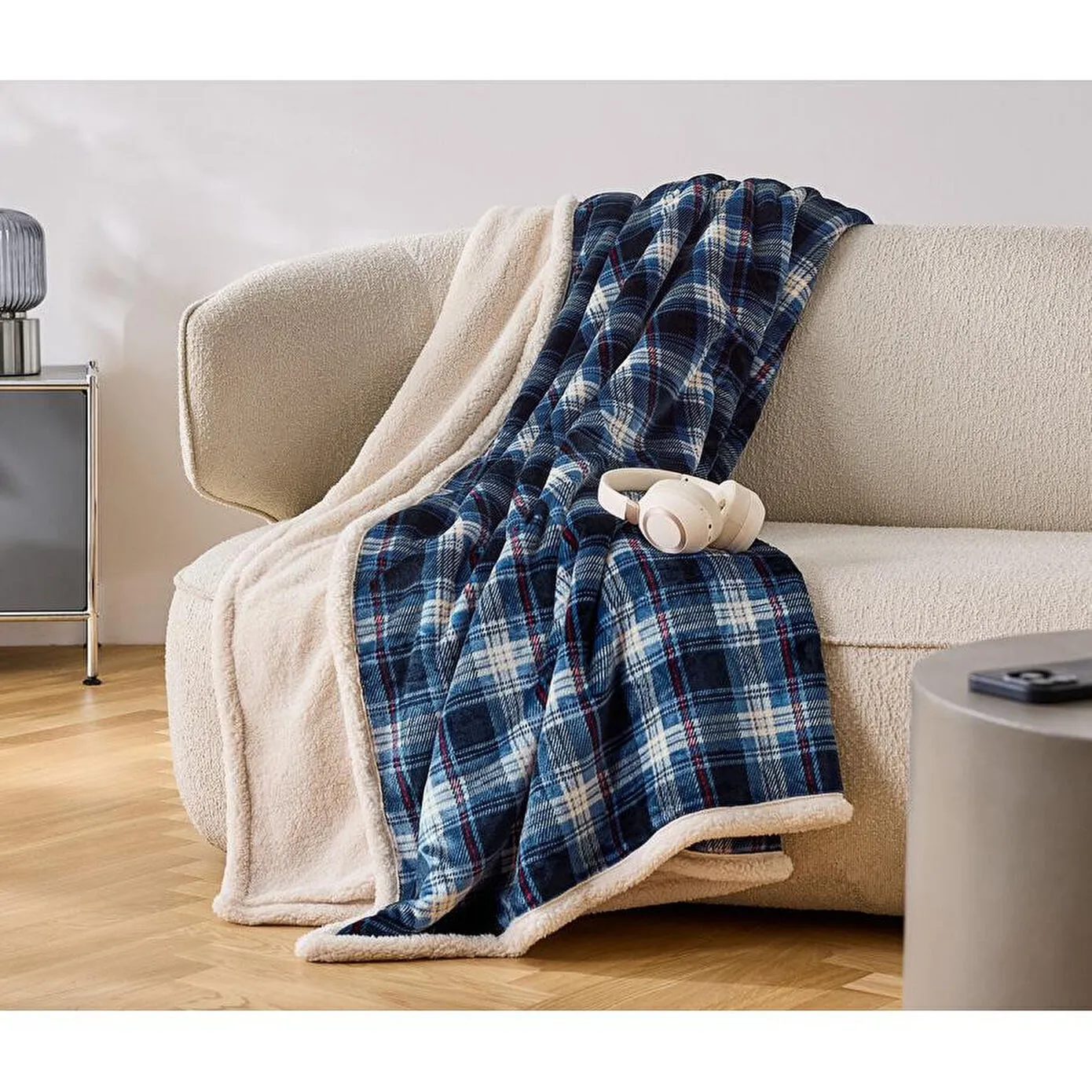 Ön yüzü kareli – arka yüzü şerpa görünümlü