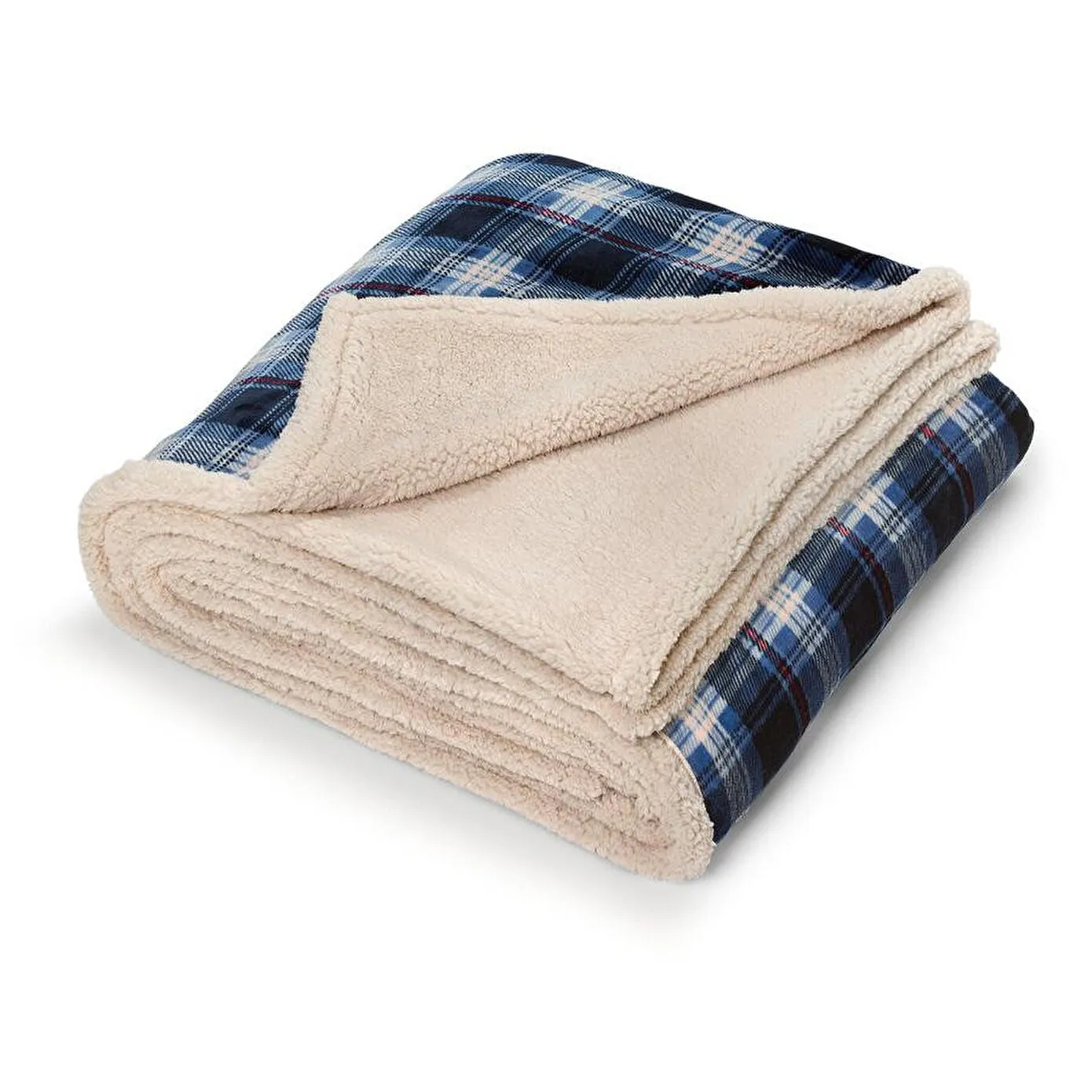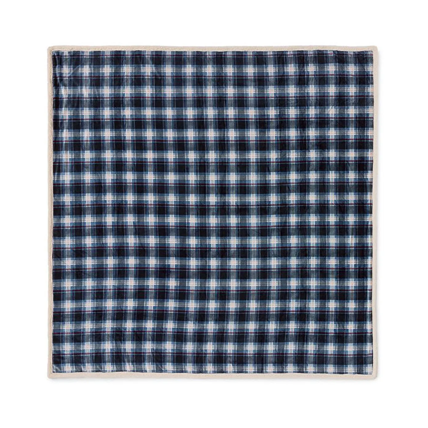 1 yüzü mavi-lacivert-krem rengi kareli, 1 yüzü krem rengi