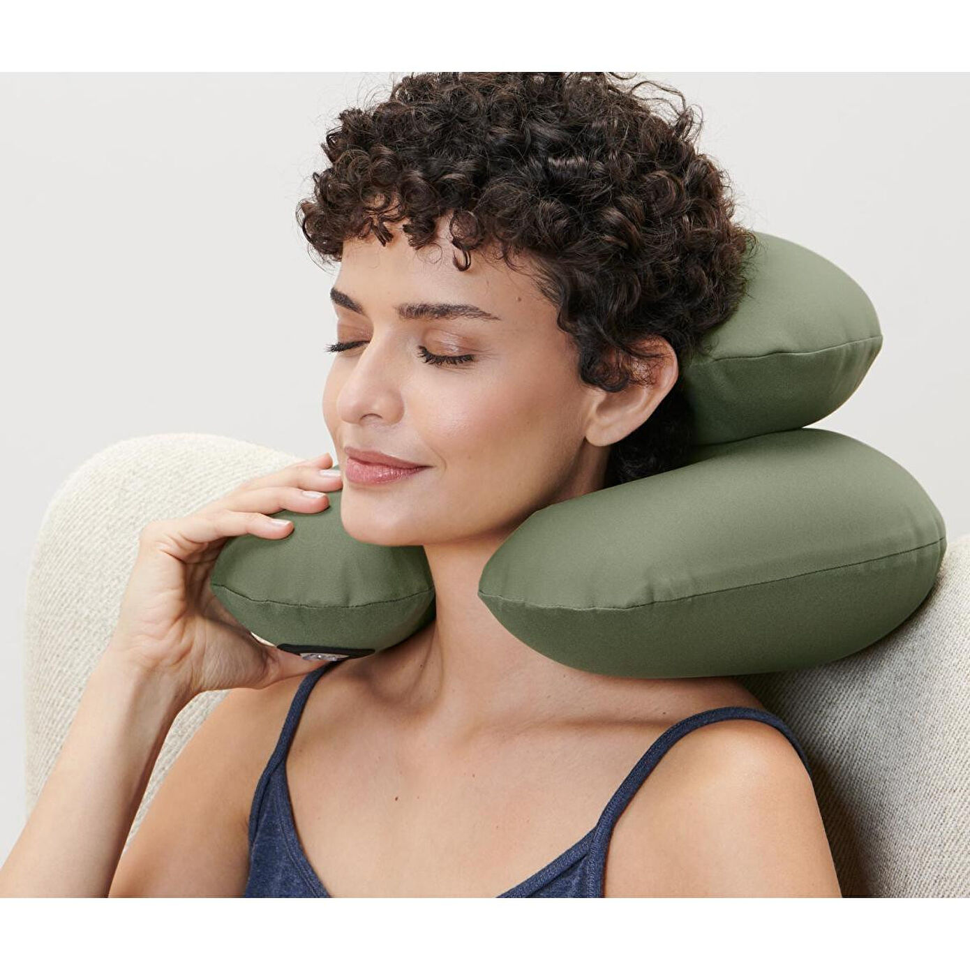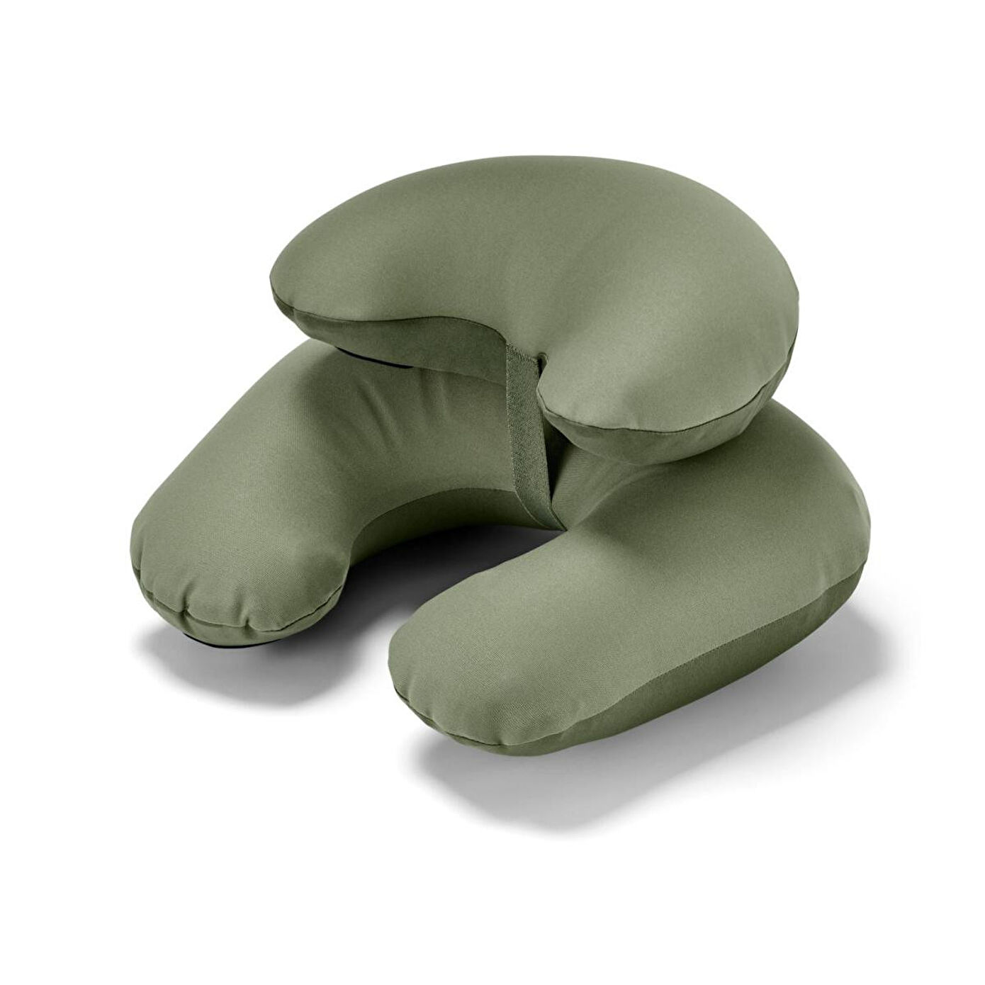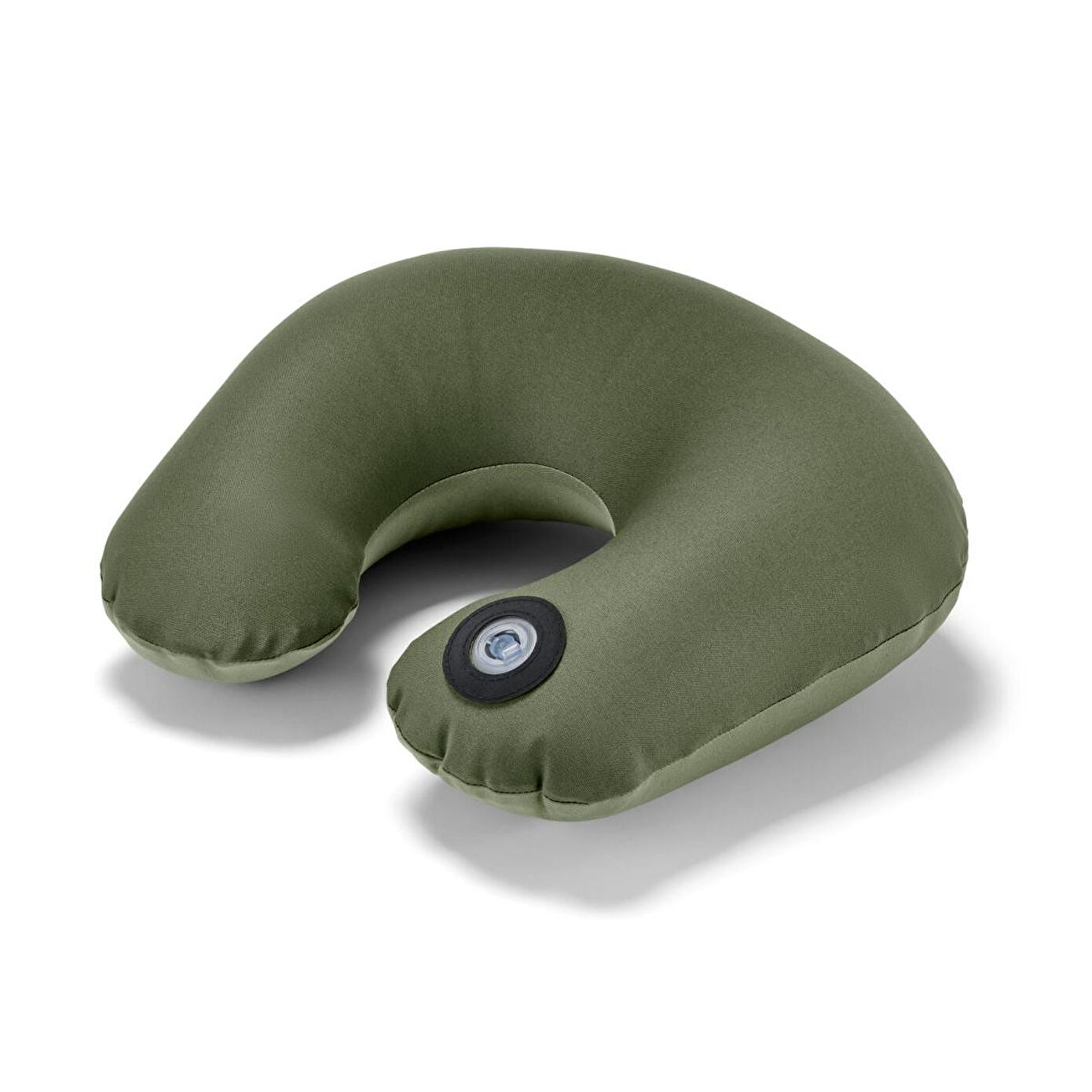 Şişme Boyun Yastığı Renk: Haki Malzeme: Yastık %100 PVCKılıf %100 polyester Ölçüler: Büyük yakl.; 42 x 29 cmKüçük yakl.; 31 x 20 cm Ekstra büyük konfor – 2 adet boyun yastığı lastik bantla birbirine bağlıdır|Yolculuklar için idealdir – çabuk ve kolay şişirilebilir, katlanarak küçültülebilir |Küçük yastık boyun desteği veya yan destek olarak istendiği gibi yerleştirilebilir|Her yastık birbirinden ayrı şişirilebilir|Çıkarılabilir, yıkanabilir kumaş kılıf|Her iki yastık tek tek de kullanılabilir