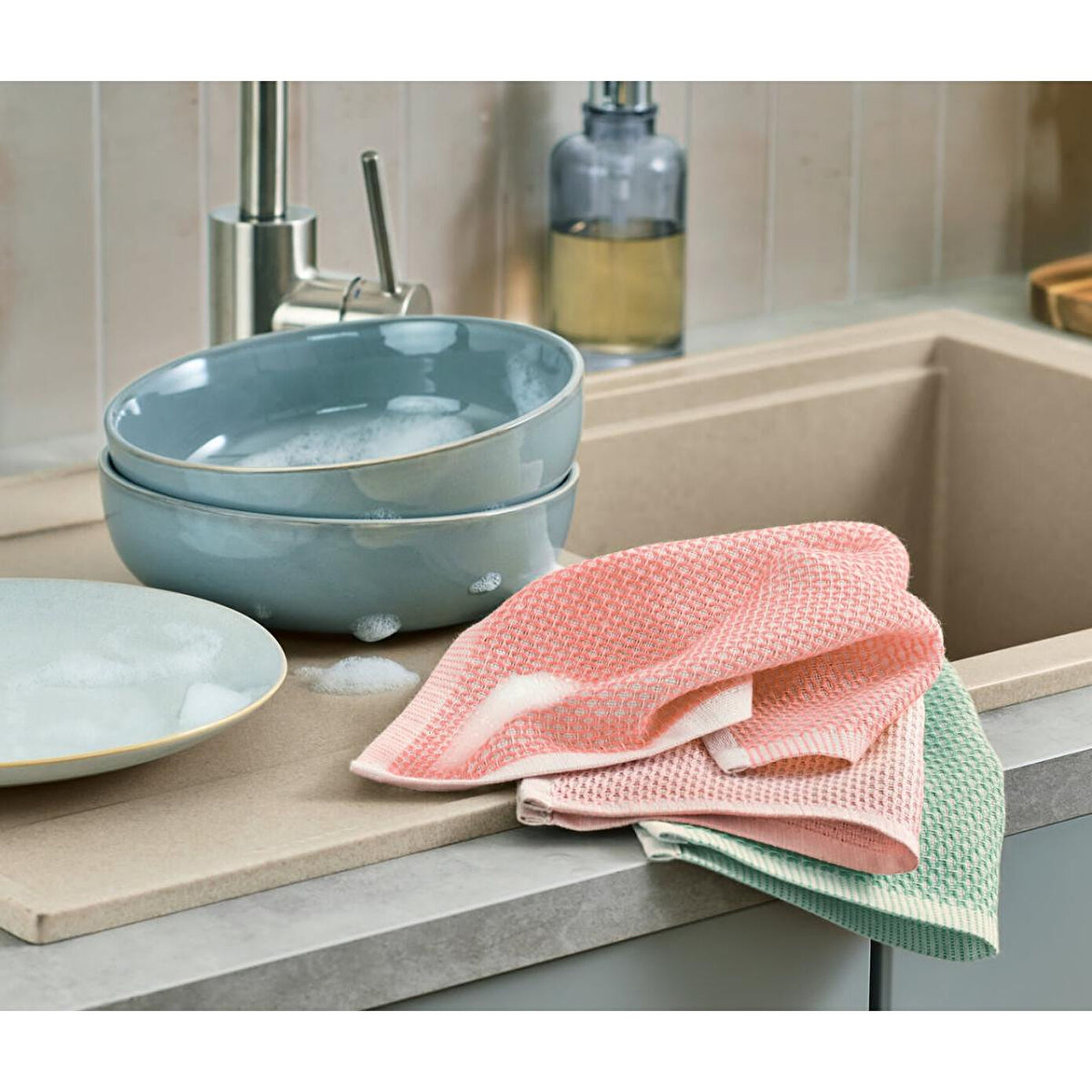 Uzun ömürlü, dayanıklı ve yıkanabilir Yapısı, son derece iyi bir kir tutma kapasitesi sağlar Çok emicidir ve tüy bırakmaz Kuru veya ıslak temizlik için Organik pamuktan Bu kurulama bezleri su kaynaklarını korur. Zararlı madde kontrolü yapılmıştır – harici, akredite kuruluşlar tarafından İçerik Renk 1 adet turkuaz, 1 adet gül kurusu, 1 adet koyu gül kurusu Malzeme %100 pamuk (organik tarımdan) Ölçüler Her biri yakl. 30 x 30 cm