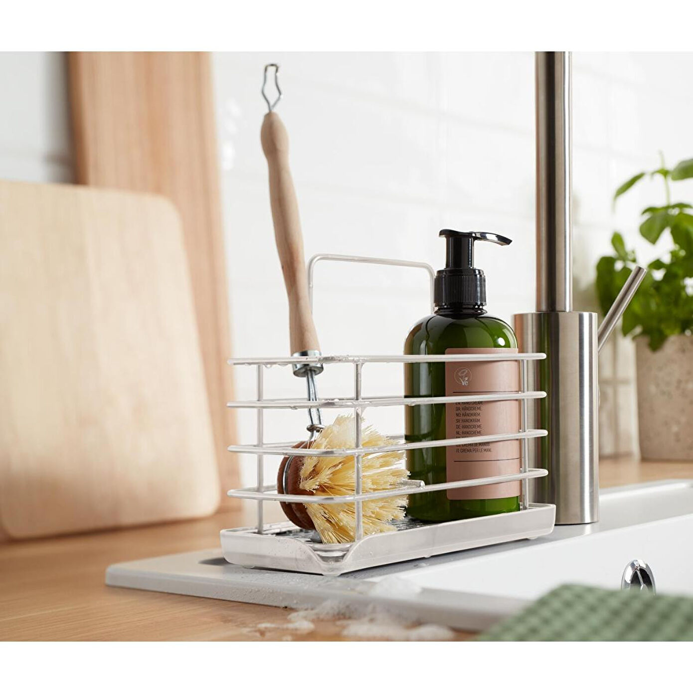 Metal Bulaşık Malzemesi Standı Renk: Teller açık griTabanı gümüş rengi Malzeme: Teller çelik, elektrostatik toz boyalıTaban 18/10 paslanmaz çelikTaban kabı %80 ABS plastik, %20 ABS plastik (geri dönüştürülmüş)Ayaklar %100 silikon Ölçüler: G x Y x D yakl.; 18 x 15 x 7,5 cm Ağırlık: Yakl.; 350 g Bulaşık fırçası, sünger ve temizleme bezleri yer kaplamadan saklanabilir|Elektrostatik toz boyalı metal ve paslanmaz çelikten|Delikli taban suyun süzülmesini sağlar|Dökme ağızlı çıkarılabilen su toplama kabı – kolay temizlenir