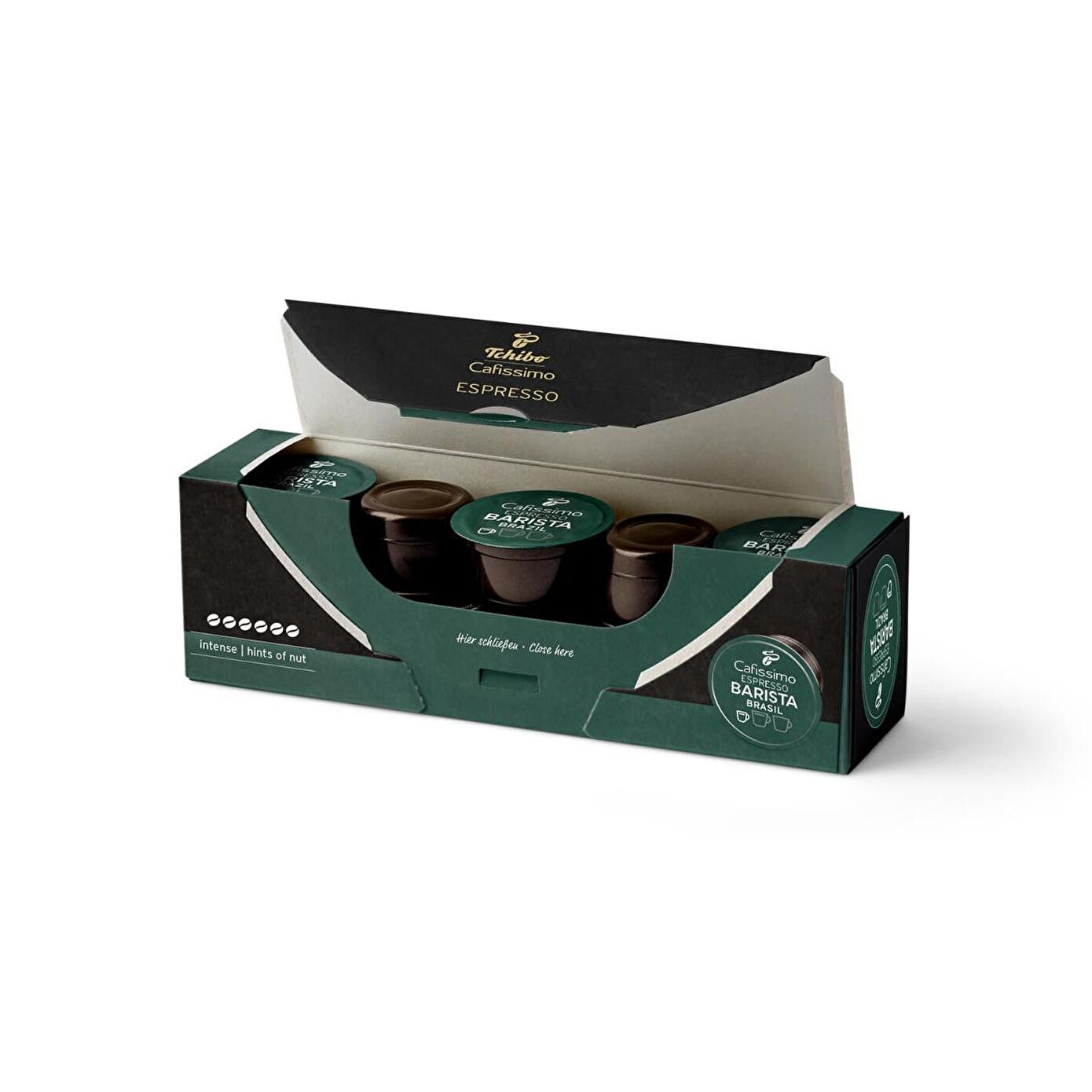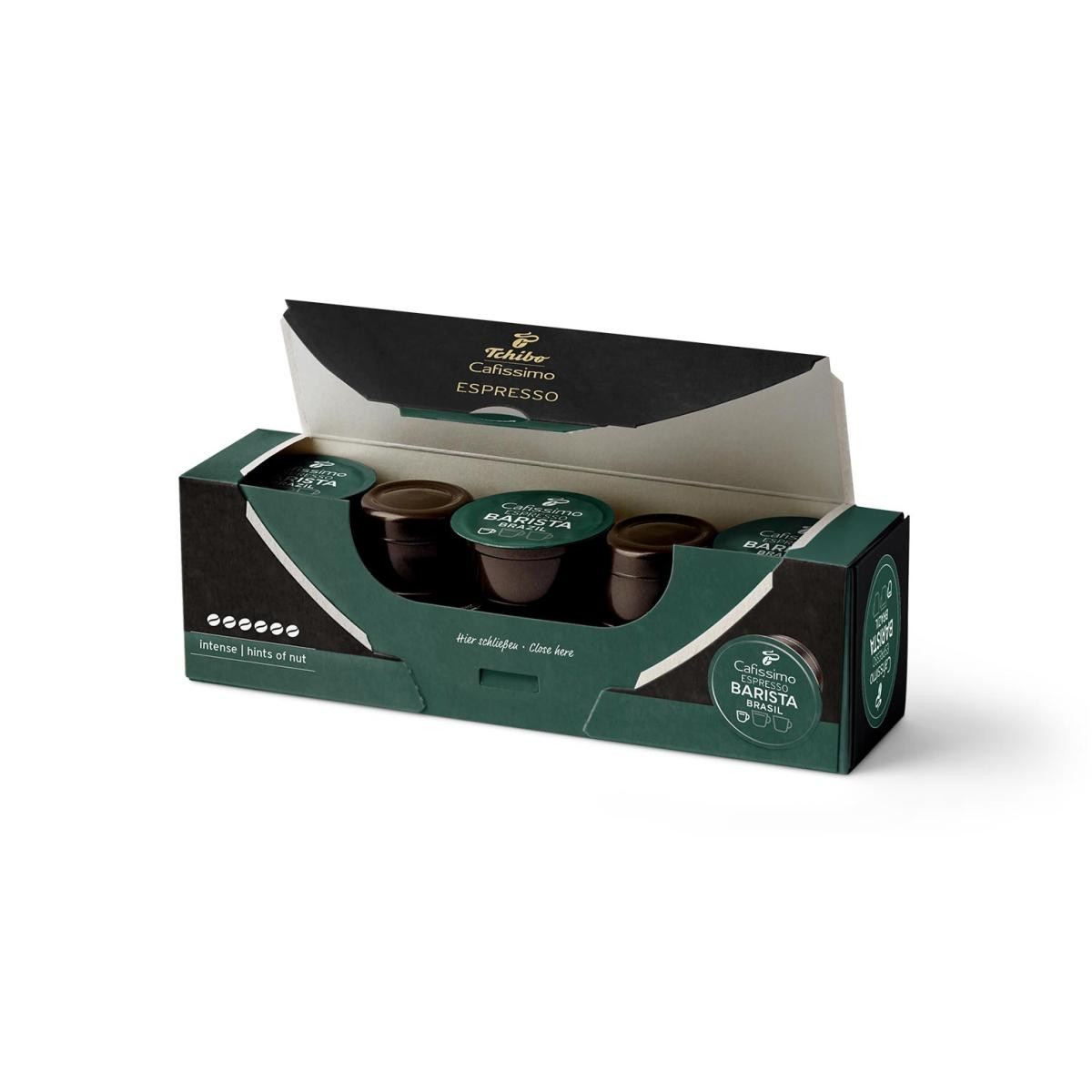 Espresso Brasil 10'lu Kapsül Kahve Espresso Brasil benzersiz kahve tadı ile çok yönlü bir lezzet ustası. Tchibo Arabica kahve çekirdekleri, Tchibo'ya özel kavurma yöntemi ile itinayla kavrulup size sunuluyor. Her bir kapsül, bir fincan leziz Espresso Brasil için gereken ölçüde ince öğütülmüş kahve içerir. Bu eşsiz lezzete ulaşmak için tek yapmanız gereken sadece espresso tuşuna dokunmak ve işte muhteşem kahveniz hazır. Bu muhteşem aromayı muhafaza eden kapsüller sayesinde, her fincanda kaliteli kahve içmenin hazzını yaşayabilirsiniz. Tchibo Cafissimo'nun hava geçirmez kapsülleri bu eşsiz aromayı kahveyi hazırladığınız ana kadar saklar. Cafissimo Kapsüllerinin Özellikleri: Her bir paket 8,5g'dan oluşan 10 Kapsül içerir. Tek bir porsiyonuyla kullanıma hazırdır, böylece hızlı bir şekilde kahvenizi hazırlayabilirsiniz. Hava geçirmez kilidi sayesinde her zaman taze aromasıyla kahve keyfinize keyif katar. Espresso Brasil kapsülün mükemmel demleme basıncı için Cafissimonuzun siyah tuşuna basınız. Aromatik & Dengeli Espresso lezzeti Herhangi bir Cafissimo Kapsül Kahve Makinesi ile kullanabilirsiniz.