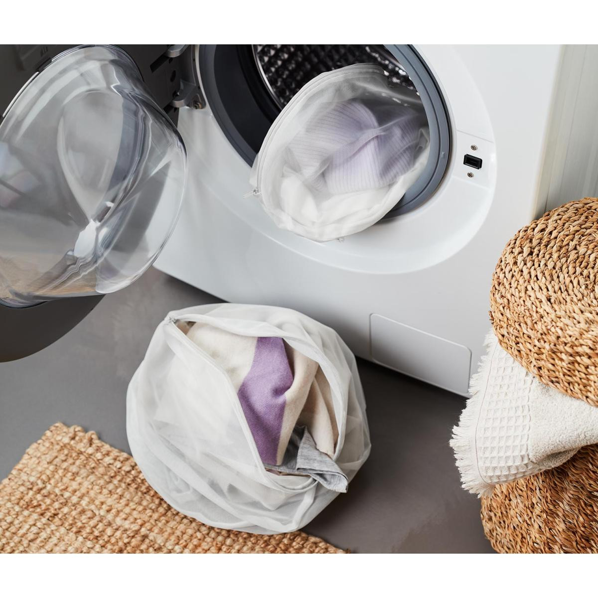 2 Adet Çamaşır Filesi Renk: Beyaz fermuarlı beyaz Malzeme: %100 polyester (geri dönüştürülmüş) Ölçüler: Çamaşır filesi küçük yakl.; 34 x 23 cm, büyük yakl.; 48 x 33 cm Yıkarken hassas kumaşları koruyun|2 farklı boyut|Son derece küçük gözenekli|Fermuar koruyuculu renkli fermuar - çamaşırları ve çamaşır makinesini hasarlara karşı korur|Geri dönüştürülmüş malzemeden|Bu çamaşır filesi, PET şişeler içerir.