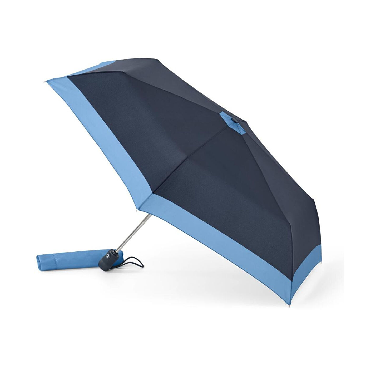 Otomatik Cep Şemsiyesi Renk: Açık mavi kenarlıklı lacivert Malzeme: Şemsiye ve koruma kılıfı %100 polyesterSap alüminyumTutacak plastik Ölçüler: Çapı yakl.; 95 cmSap dahil çubuk uzunluğu açık yakl.; 56,5 cm, kapalı yakl.; 27,5 cm İçerik/Aksesuar: Koruma kılıfı dahildir Tek düğme ile açılır ve kapanır|Kompakt cep boyutunda|Elastik taşıma kayışlı yumuşak tutacak|Su ve kir tutmayan üst yüzey|Sağlam alüminyum sap|Koruma kılıfı dahildir