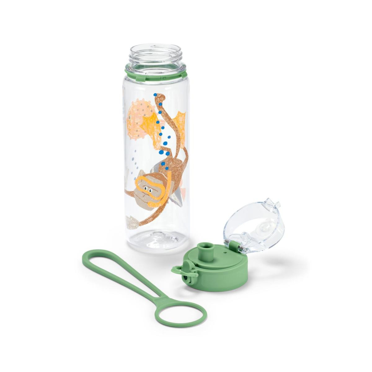 Matara Renk: Çok renkli Malzeme: Şişe ve kapak %100 tritanPlastik parçalar %100 polipropilenYay paslanmaz çelikKapaktaki kayış ve parçalar %100 silikon Ölçüler: Kapak dahil yüksekliği yakl.; 25 cmÇapı yakl.; 6,5 cm İçerik/Aksesuar: Kullanma kılavuzu dahildir Ağırlık: Yakl.; 180 g Dolum kapasitesi: Yakl.; 550 ml Uyarılar: Mataraya asitli içecekler ve 40 °C üzerinde sıcak içecekler doldurmayınKapak, bulaşık makinesinde yıkanmaya uygun değildir Sızdırmaz – klipsli kapaklı |Çıkarılabilir silikon taşıma askısı|Yolculuk için idealdir|Kapasitesi yakl.; 550 ml|BPA içermez