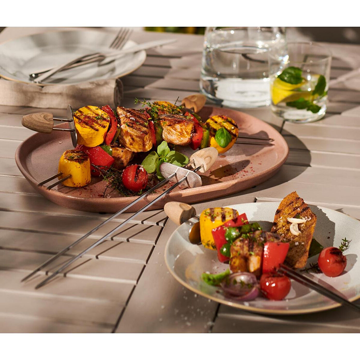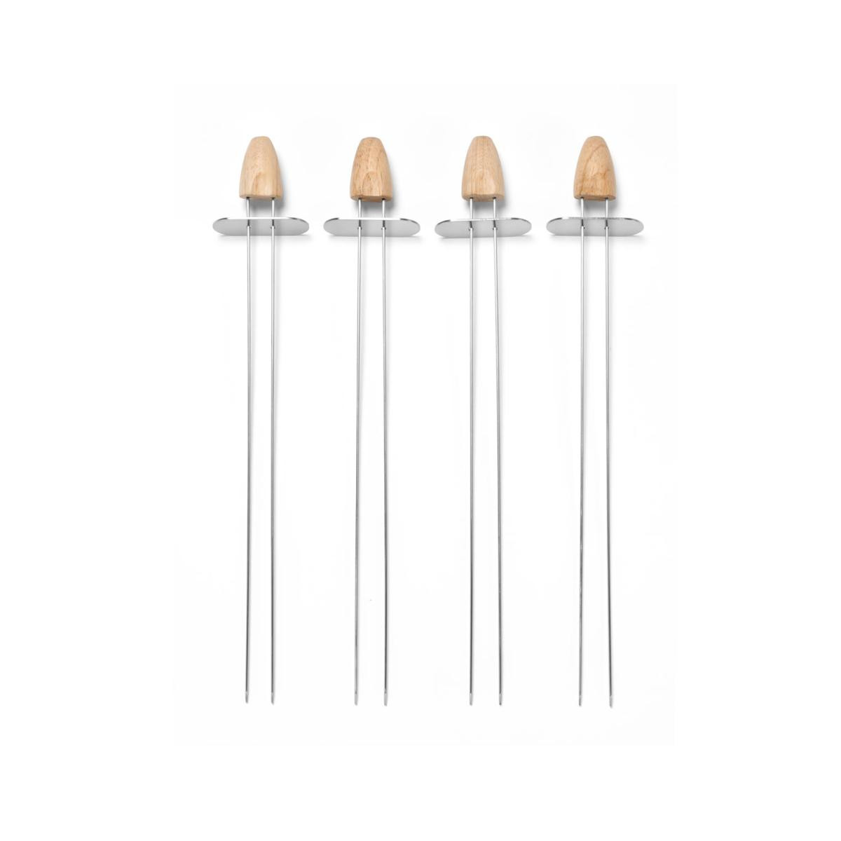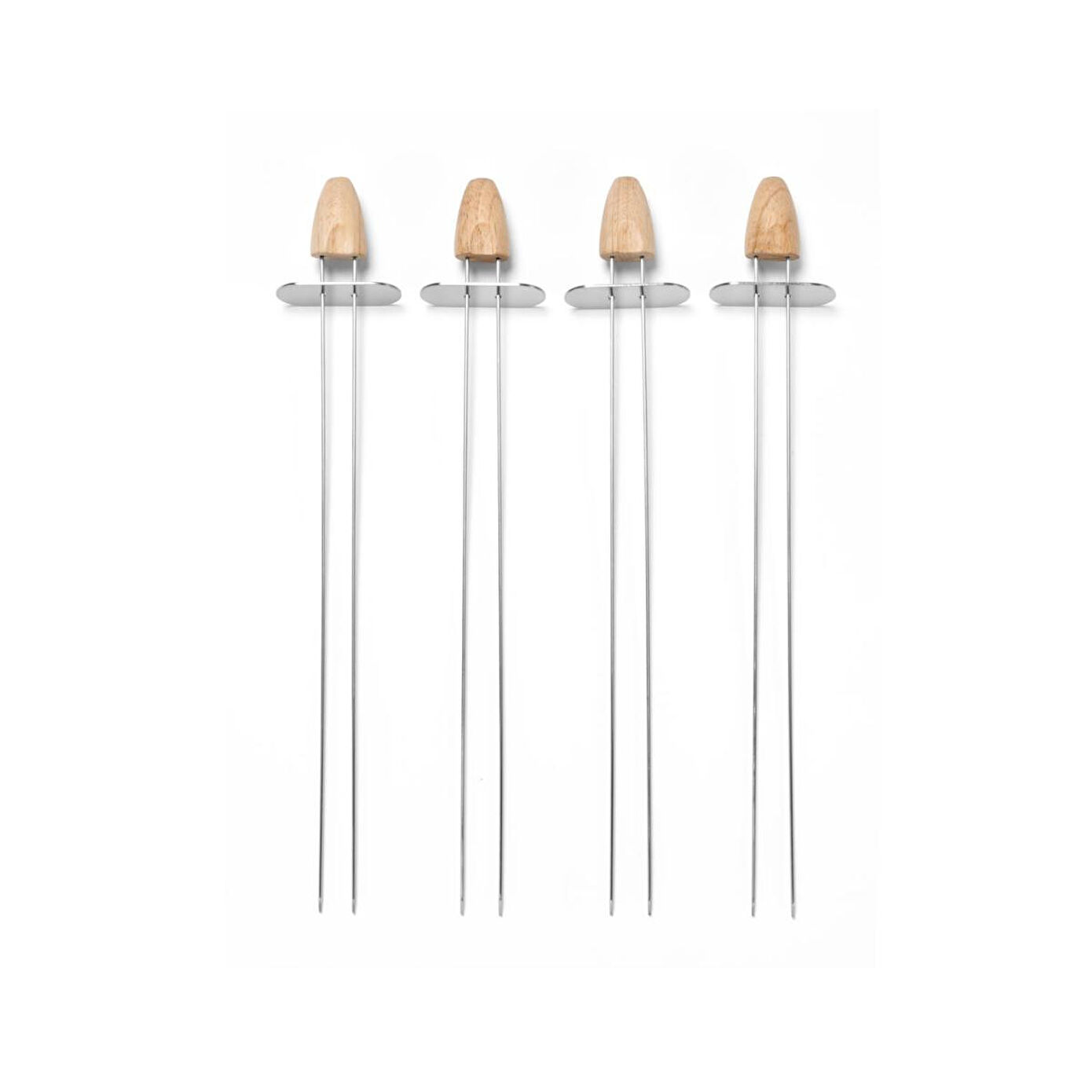 4 Adet Şaşlık Şişi Renk: Paslanmaz çelik rengiTutacak doğal kauçuk rengi Malzeme: Şişler 18/10 paslanmaz çelikTutacak FSC® sertifikalı masif kauçuk ahşabı Ölçüler: G x Y x D yakl.; 33 x 2,5 x 6 cmHer şişin uzunluğu yakl.; 29,5 cm Uyarılar: Dikkat: Ahşap tutacaklar ısıya dayanıklı değildir ve sıyırmak için olan metal plakalar sıcaktır! Izgaralık yiyecekleri şekilde tutmak için her birinde 2 adet şiş ucu|Izgara yiyeceklerin kolay sıyrılması için sürgülü plaka|Paslanmaz çelikten şiş ve sürgü|FSC® sertifikalı ahşap tutacaklı|Her şişin uzunluğu yakl.; 33 cm|Bu şaşlık şişleri çevreyi korur.; *
