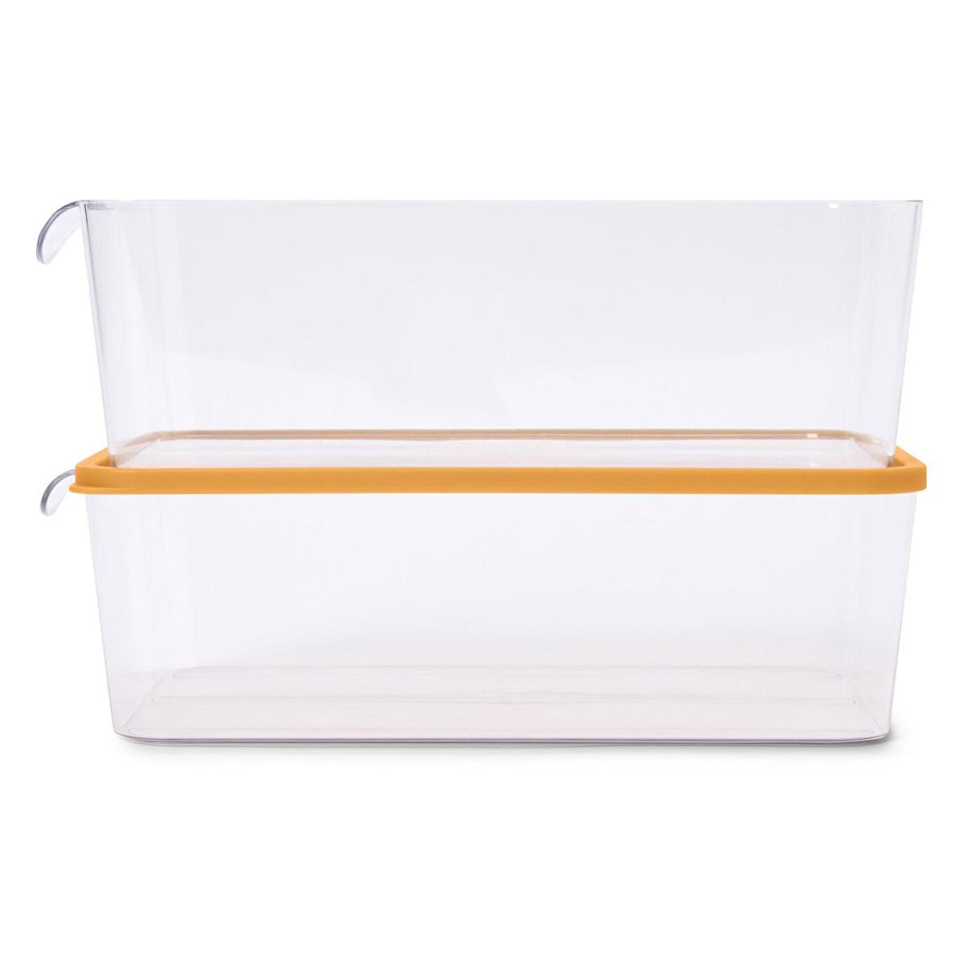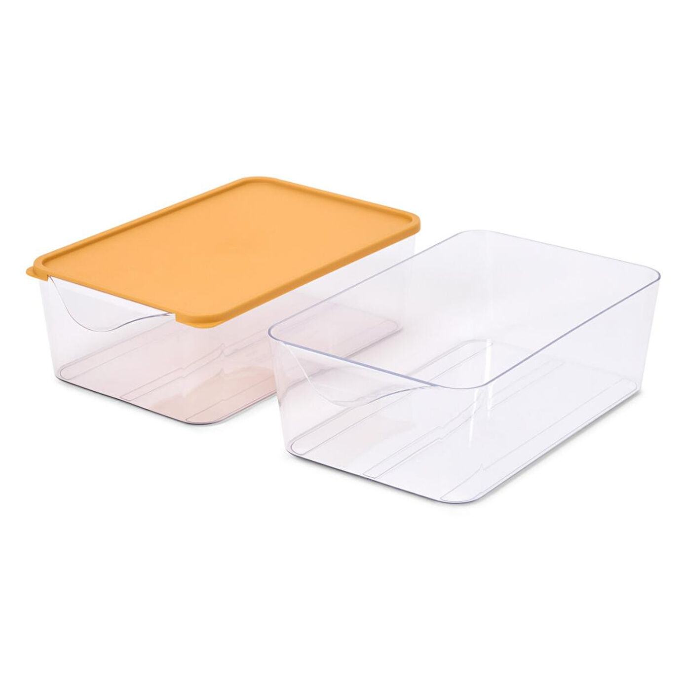 2 Adet Buzdolabı Düzenleme Kabı Üst üste dizilebilir Kullanıma hazır saklama: Tüm yiyeceklere sorunsuzca erişilir – kapları dışarı çekmeniz yeterli Saydam tasarım – içeriği bir bakışta görülebilir Gıda maddelerine uygundur ve bulaşık makinesinde yıkanabilir Bir kapak dahildir Zararlı madde kontrolü yapılmıştır – harici, akredite kuruluşlar tarafından Renk Kaplar saydam Kapak sarı Malzeme Kaplar %100 stiren akrilonitril kopolimer Kapak %100 polipropilen Ölçüler Her birinin G x Y x D yakl. 27,5 x 8,5 x 16,5 cm Taşıma Kuvveti Her biri maks. 1 kg