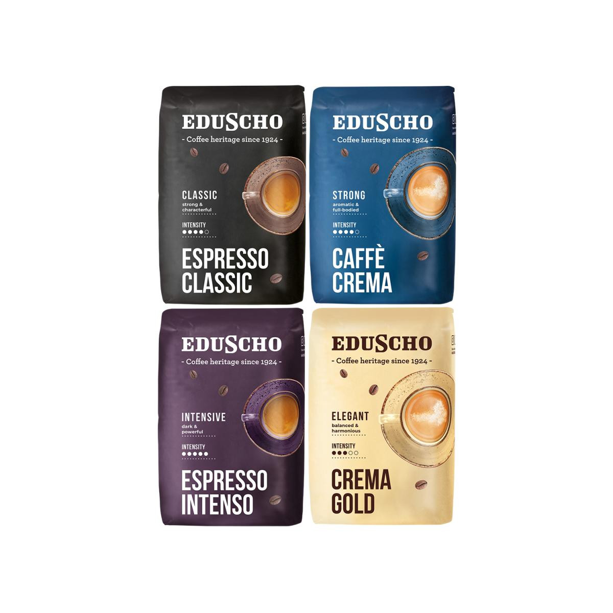 Eduscho Espresso Classic Tadım Profili Yoğunluk: 5 kahve çekirdeğinden 4 Kavurma: 5 kahve çekirdeğinden 5 Kavrulmuş kahve, tam çekirdek İçerik 1 x 500 g = 500 g EDU Crema Gold 500g Tadım Profili Yoğunluk: 5 kahve çekirdeğinden 3 Kavurma: 5 kahve çekirdeğinden 3 İçerik 1 x 500 g = 500 g Eduscho Espresso Intenso - 500 g Koyu & güçlü Bu sert espresso tam sana göre! Karakteristik kahve harmanımız özenle ve yoğun şekilde kavruldu. Lezzetli kahvemizin tadını Cappuccino ya da Latte macchiato olarak da çıkarabilirsin. Koruyucu atmosferde paketlenmiştir (E941) Kuru bir yerde saklayın, doğrudan güneş ışığından koruyun. Yoğunluk: 5 Tadım Profili Yoğunluk: 5 kahve çekirdeğinden 5 Kavurma: 5 kahve çekirdeğinden 5 Kavrulmuş kahve, tam çekirdek İçerik 1 x 500 g = 500 g Saklama Uyarıları Koruyucu atmosferde paketlenmiştir. Isıdan uzak, kuru ve karanlık bir yerde saklayın.