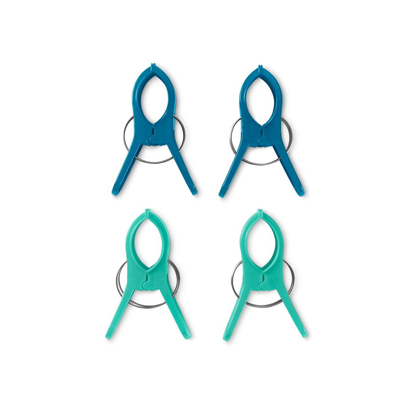 4 Adet Havlu Mandalı Renk: 2 adet mavi, 2 adet turkuaz Malzeme: %100 polipropilenYay paslanmaz çelik Ölçüler: G x Y x D yakl. 7,5 x 12 x 3 cm İçerik/Aksesuar: 4 adet havlu mandalından oluşan set Havluları şezlonglara sabitlemek için|Güçlü, sağlam plastik|Çelik yay sayesinde yüksek sıkıştırma kuvveti|Birçok başka kullanım olanağı vardır