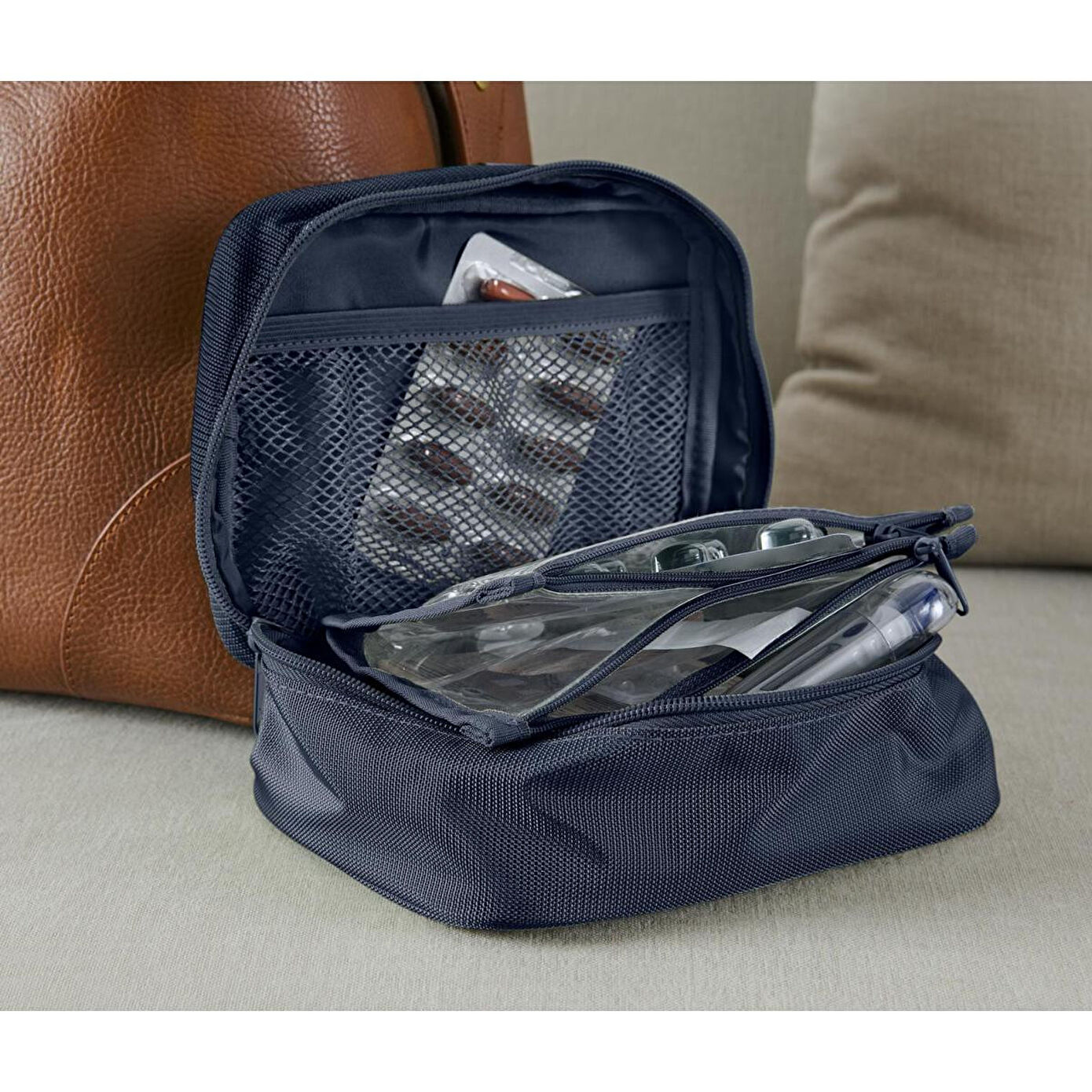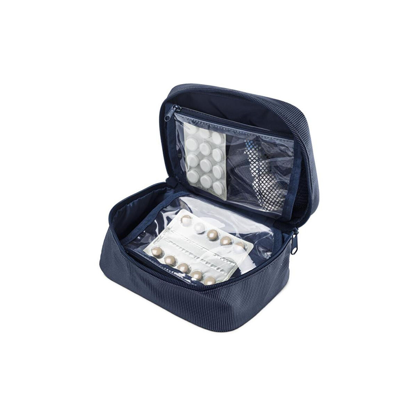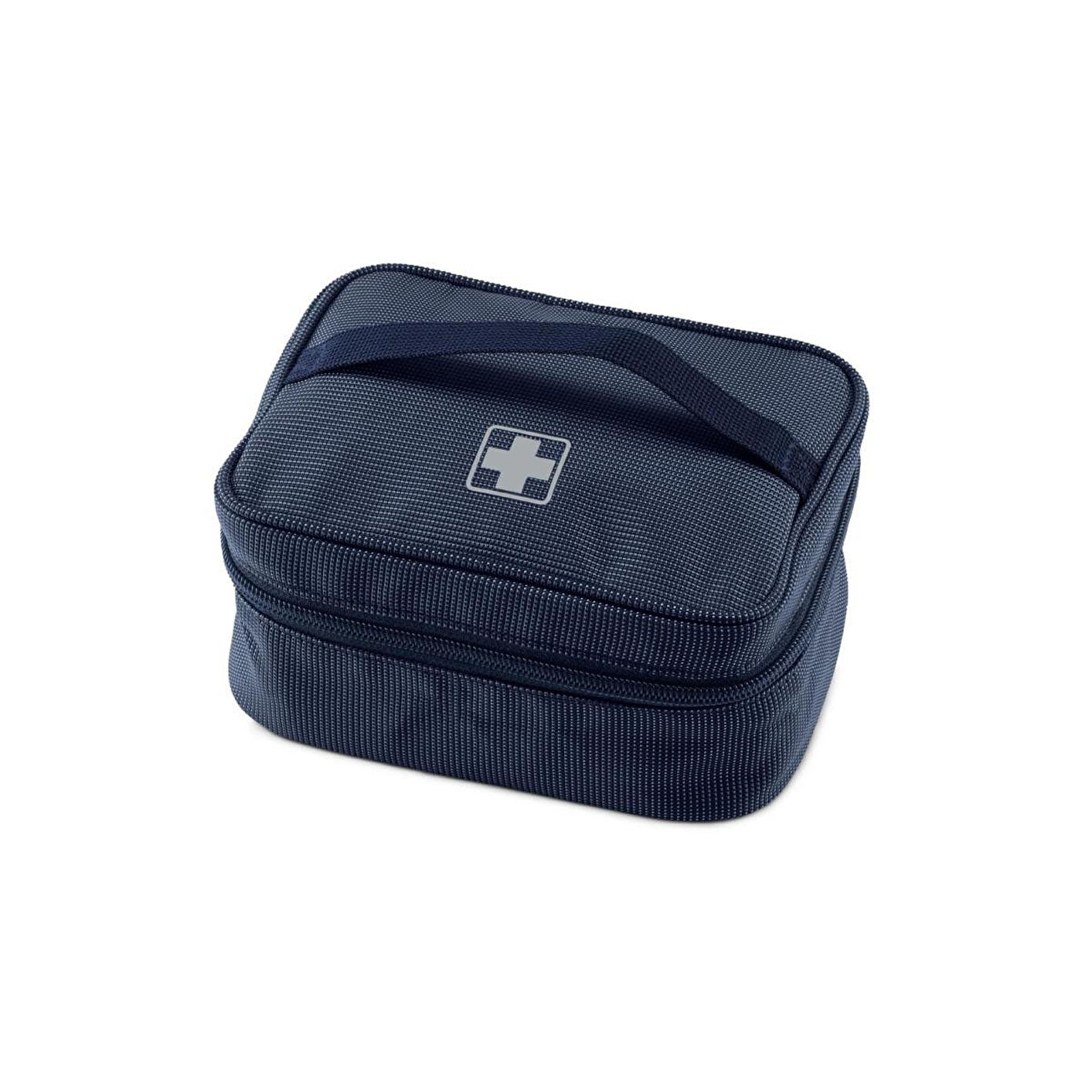 İlaç Çantası Renk: Lacivert Malzeme: %100 polyesterArka yüzün kaplaması %100 poliüretanFermuar poliamid ve metalBirleştirme bandı polyester ve polipropilenElastik birleştirme bandı polyester ve elastanFile iç cep %100 polyesterSaydam iç cep folyosu PVAKemer bandı %100 polipropilen Ölçüler: G x Y x D yakl. 18,5 x 9 cm x 14 cmKemer genişliği yakl. 2 cm Taşıma Kuvveti: Maks. 5 kg İlaçları ve ilk yardım malzemelerini düzenli muhafaza etmek için|2 şeffaf iç çanta |Alt kısımda cepler|Kapakta fileli parça|Çepeçevre fermuar