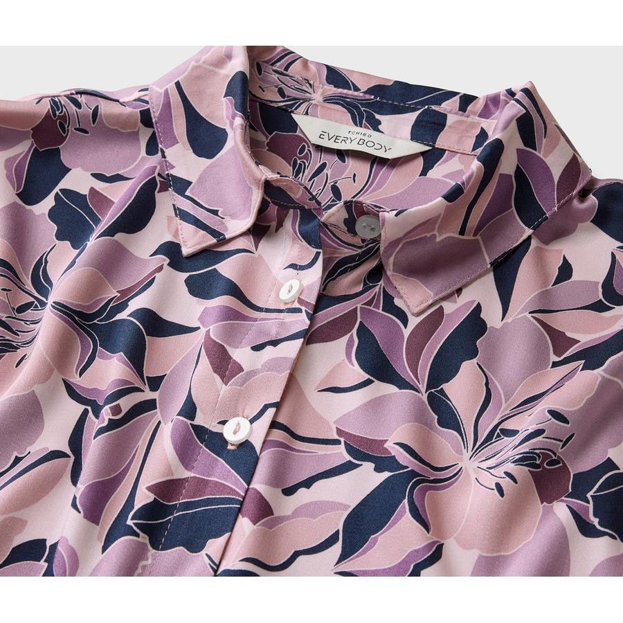 Tamamı eflatun ve gül kurusu çiçek baskılı