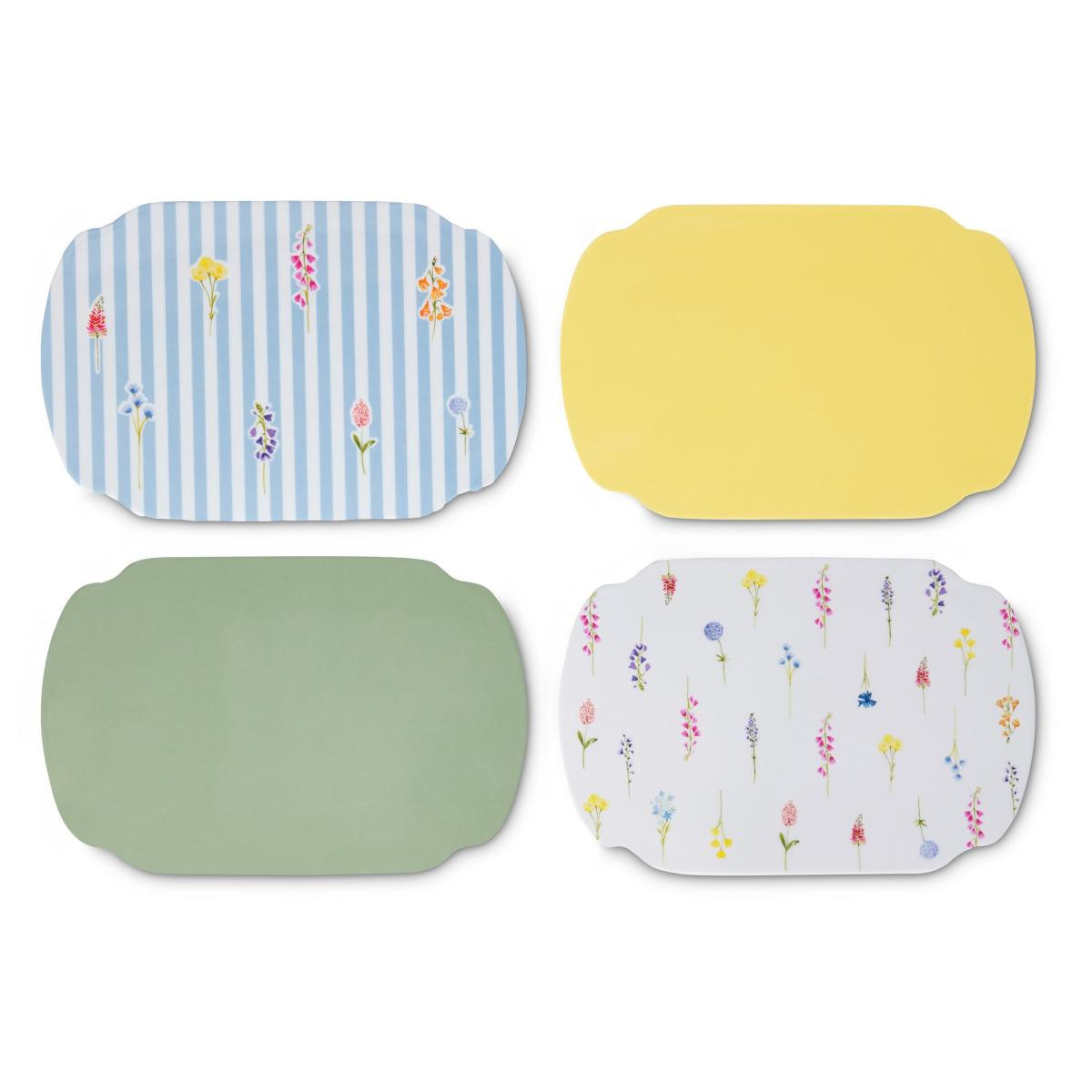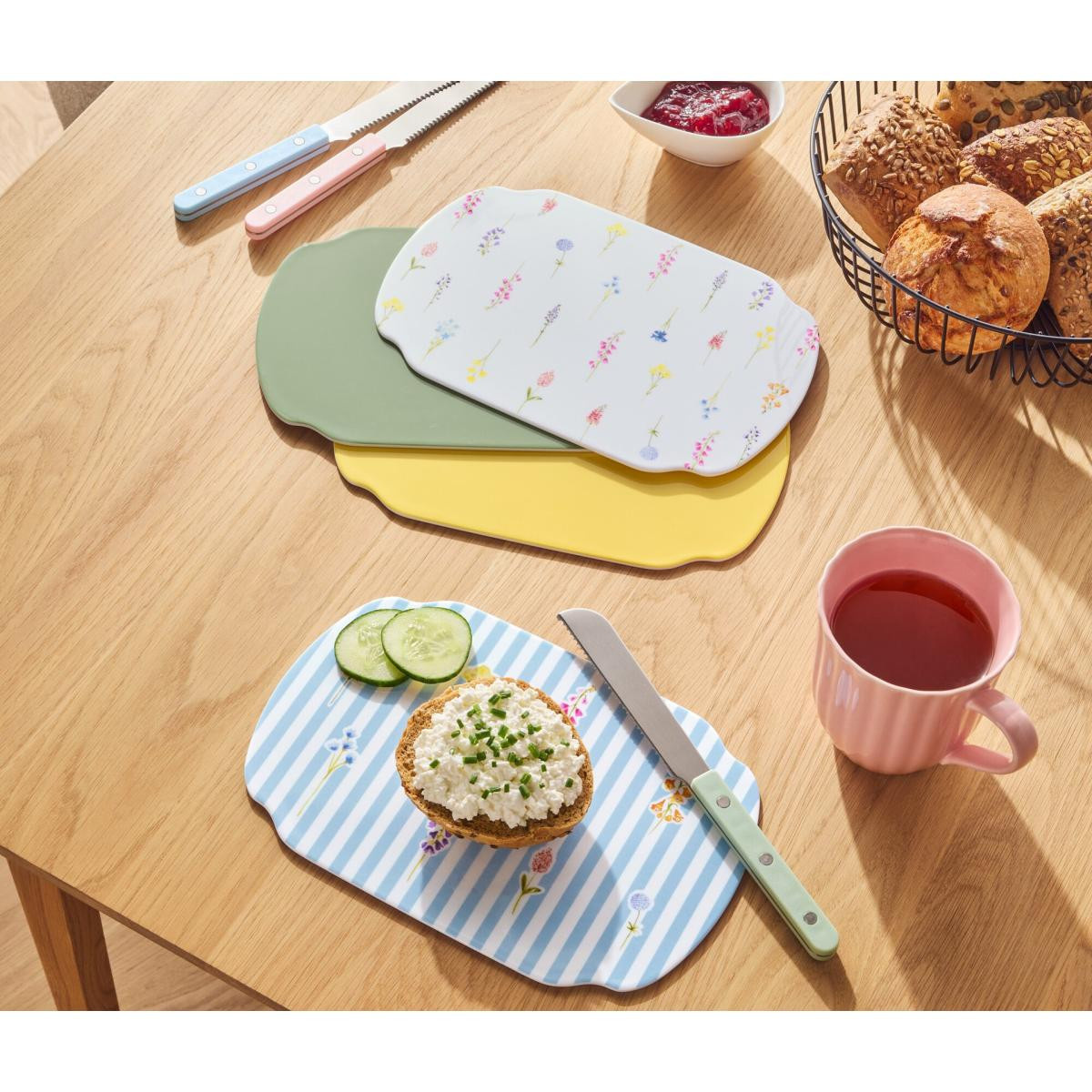 1 adet sarı, 1 adet yeşil, 1 adet çiçek dekorlu beyaz, 1 adet açık mavi-beyaz çizgili çiçek dekorlu