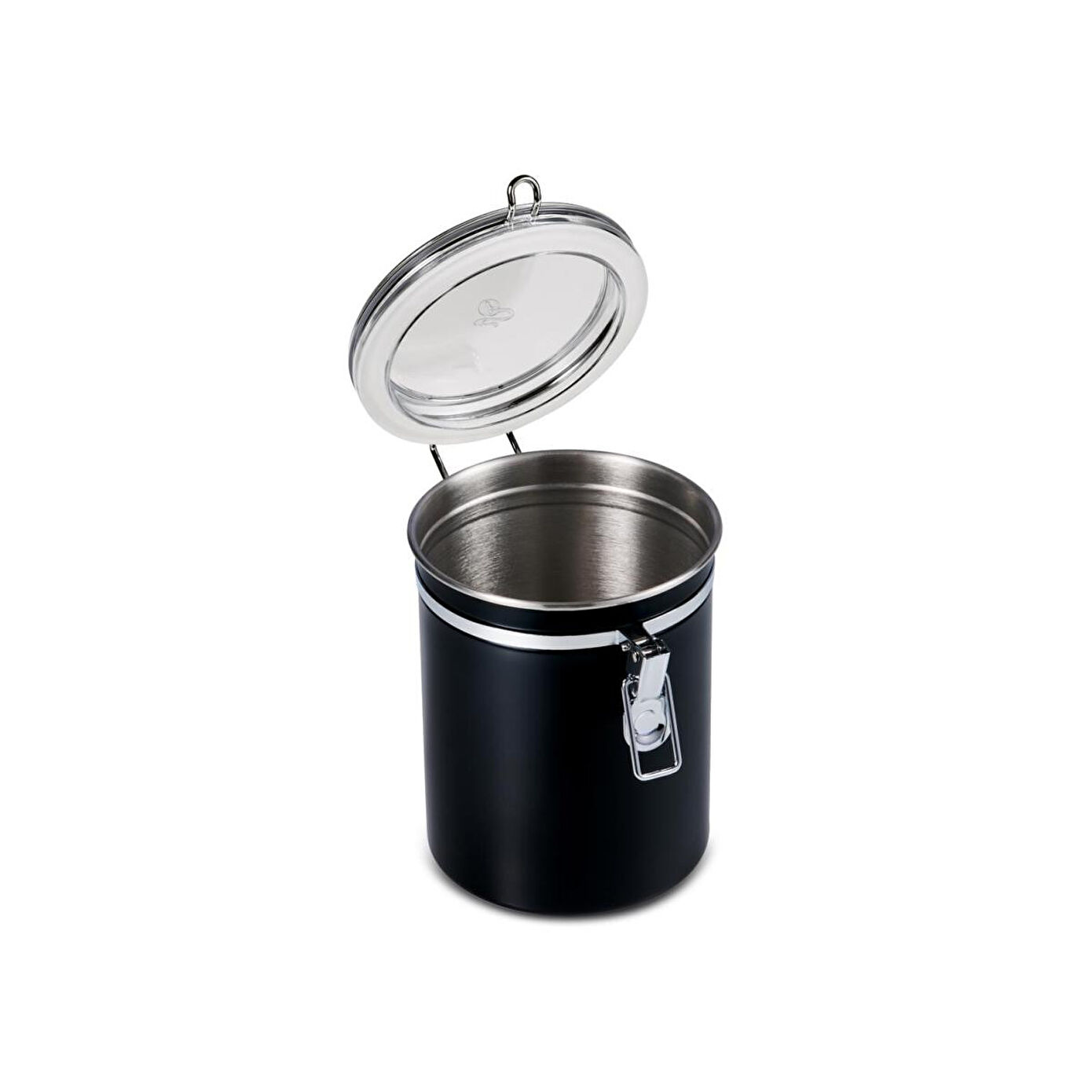Tchibo Kahve Kutusu, Siyah Renk: Kapak: SaydamKutu: Siyah Malzeme: Kapak: 18/10 paslanmaz çelik mandallı plastik (aroma koruyucu)Kutu: 18/10 paslanmaz çelik Kahve saklamak için ideal|18/10 paslanmaz çelikten yapılmıştır|Krom kaplama klips kapatma: aroma geçirmez kapatma|Doldurma hacmi: yaklaşık 500 g kahve