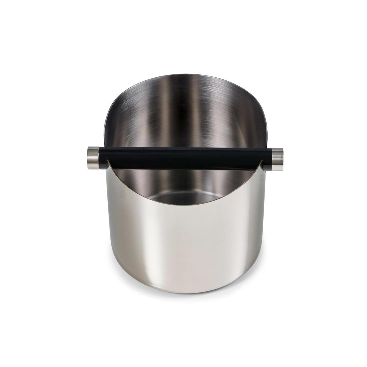 Knock Box Renk: paslanmaz çelik rengi, siyah Malzeme: Paslanmaz çelik ve kauçuk Islak kahve telvelerinin portafiltreden kolayca atılması için kap|Paslanmaz çelikten yapılmış yüksek kaliteli ve basit|Tezgahı korumak için halka şeklinde silikon taban|Kılavuz çekme çubuğu, düşük gürültülü kılavuz çekme ve eleklerin ve portafiltrenin korunması için kauçukla kaplanmıştır|Kabın ve çubuğun kolay temizlenmesi için çıkarılabilir vurma çubuğu|Bulaşık makinesinde yıkanmaz