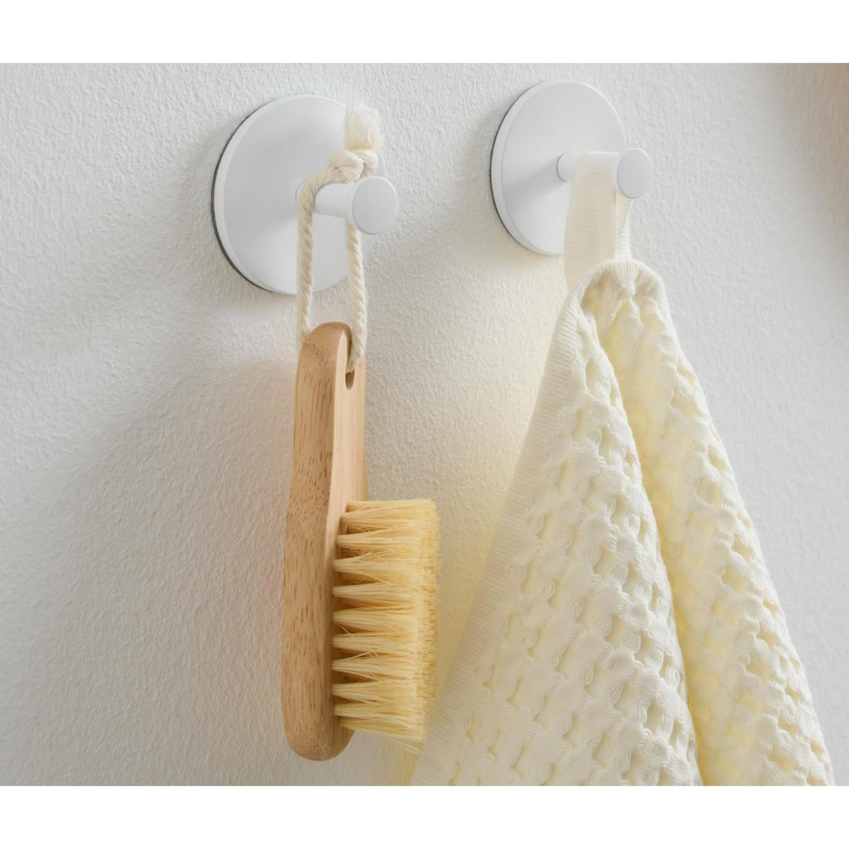 2 Adet Kanca Renk: Beyaz Malzeme: Döküm çinko, krom kaplama Ölçüler: Her birinin yüksekliği yakl.; 2,5 cmHer birinin çapı yakl.; 5 cm İçerik/Aksesuar: Kullanma kılavuzu dahildir Ağırlık: Her biri yakl.; 57 g Taşıma Kuvveti: Her biri maks.; 1,5 kg Delmeden hızlı ve kolay montaj|Düz yüzeylerde sağlam tutuş|Maks.; 1,5 kg'a kadar olan eşyalar için güvenli tutuş |Islaklığa dayanıklı – ıslak alanlar için de uygun