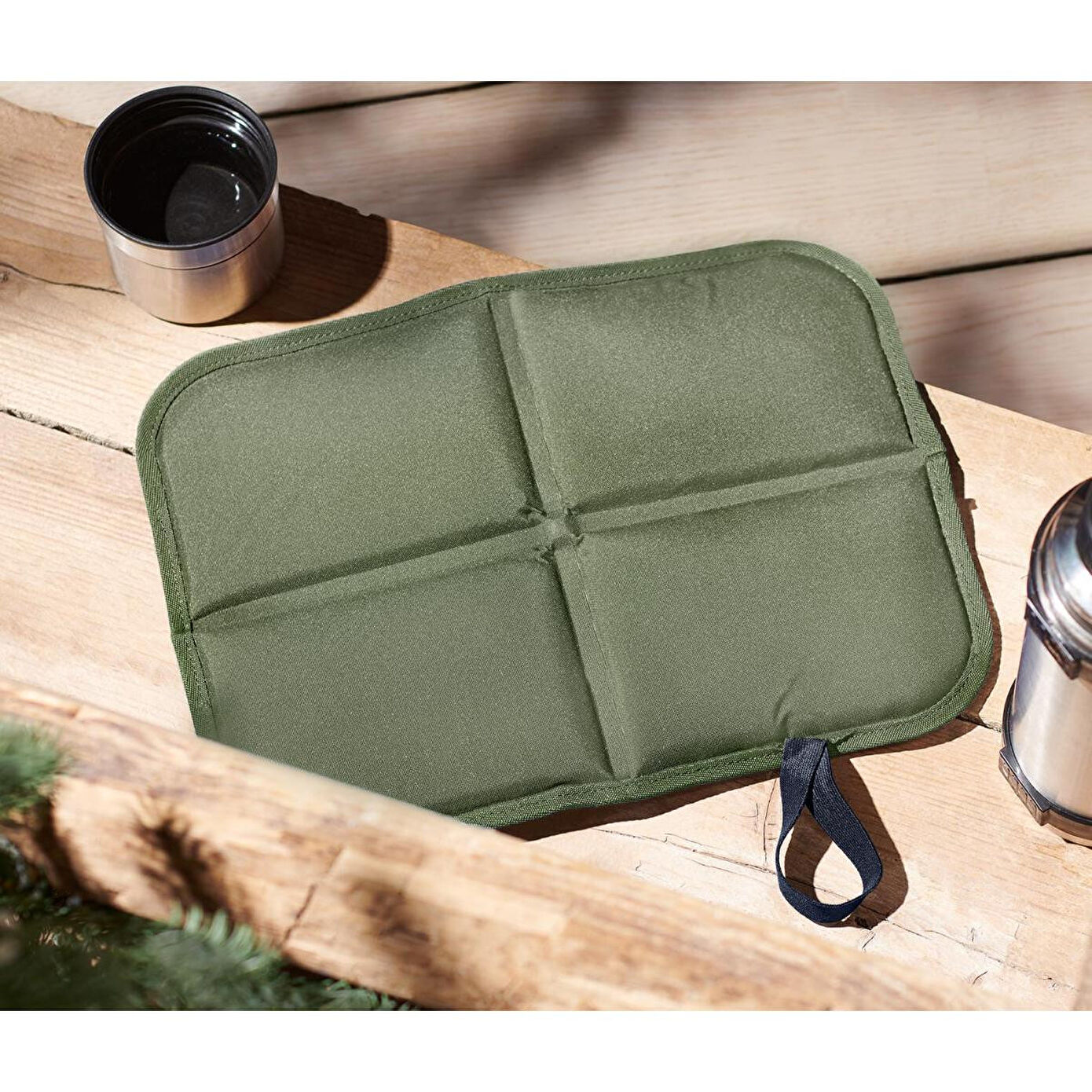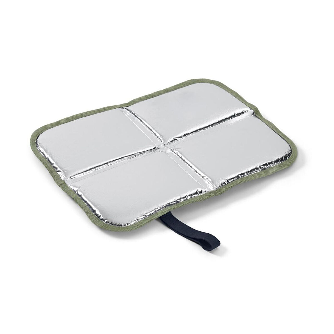 Katlanabilen Termal Minder Renk: Açık yeşil, lacivert sabitleme kayışı Malzeme: Üst yüzeyi %100 polyester (geri dönüştürülmüş), kaplama %100 poliüretanFolyolu alt tarafı alüminyumDolgu süngerSabitleme kayışı, biye, cırt cırt %100 polyester Ölçüler: Yakl.; 39 x 29,5 cmKalınlık yakl.; 1,5 cmSabitleme lastiğinin uzunluğu yakl.; 27,5 cm Islaklığa ve soğuğa karşı koruma|Kampta, park banklarında veya konserlerde kullanmak için ideal|Çevre dostu evoPel emprenye sayesinde su tutmaz|Optimum ısı yalıtımı|İç kısmındaki yumuşak sünger katman sayesinde yüksek oturma konforu|Kompakt şekilde atlanabilir ve sabitleme kayışıyla sabitlenebilir|Yer kaplamaz|Geri dönüştürülmüş polyesterli|Bu termal minder doğal kaynakları korur.