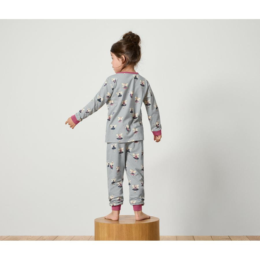 1 adet pijama üstü koyu pembe üzerine çok renkli peri desenli, pijama altı pembe-koyu pembe halkalı