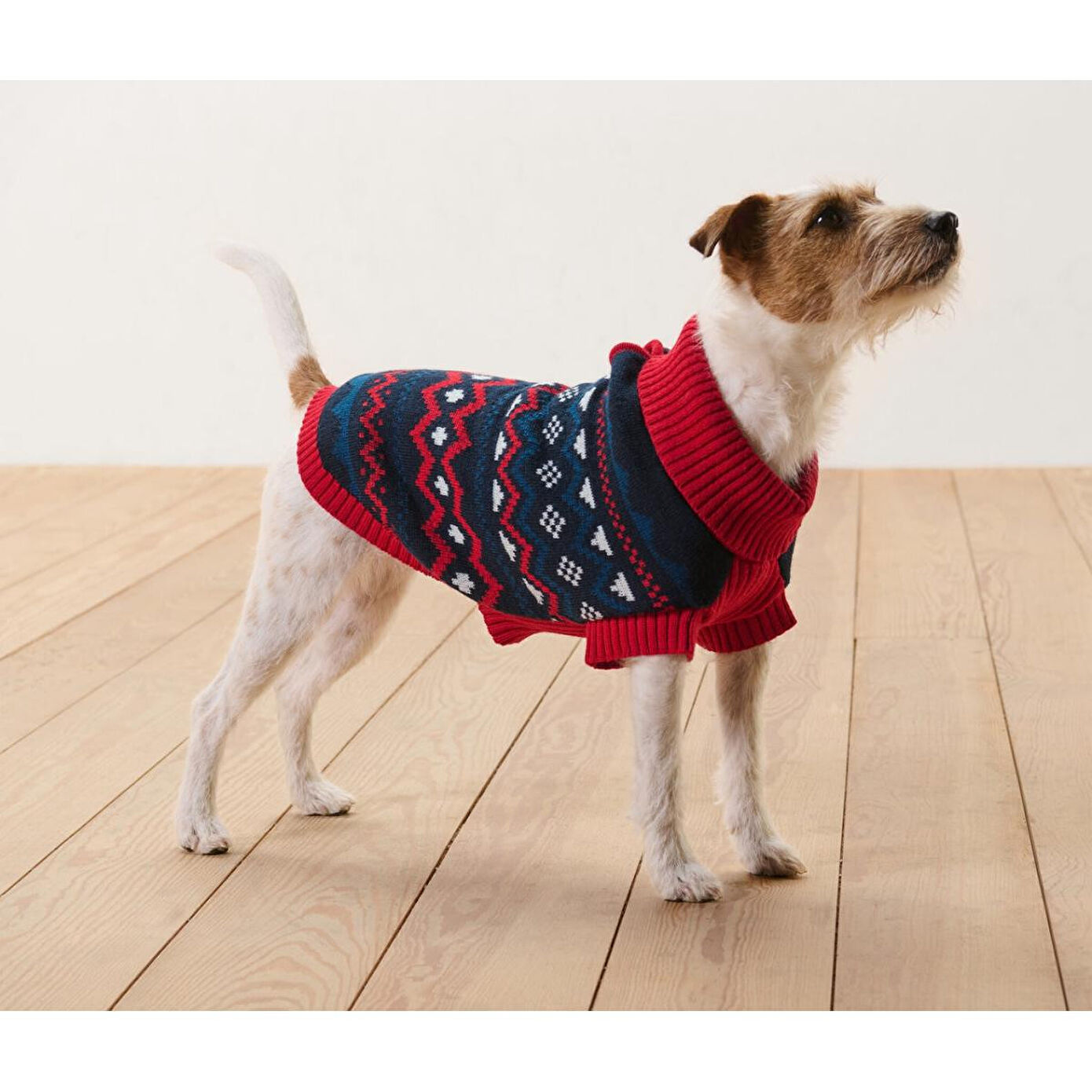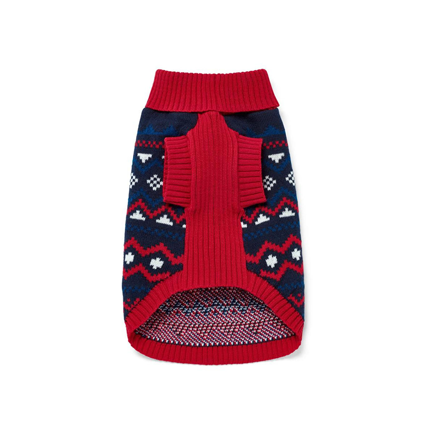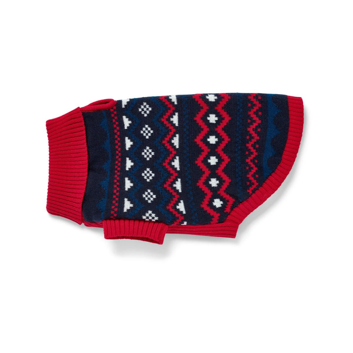 Köpek Kazağı Renk: Kırmızı-mavi-beyaz motifli Malzeme: %100 polyester (geri dönüştürülmüş) Ölçüler: Toplam uzunluğu yakl. 42 cm Gövde uzunluğu 40 cm'ye kadar olan köpekler için|Pug, Jack Russell veya Fransız Bulldog gibi köpek ırkları için uygundur|Rüzgara ve soğuğa karşı korur|Kolay takılıp çıkarılabilir|Yumuşak örgüden|Çamaşır makinesinde yıkanabilir|Geri dönüştürülmüş malzemeden|Bu köpek kazağı doğal kaynakları korur.