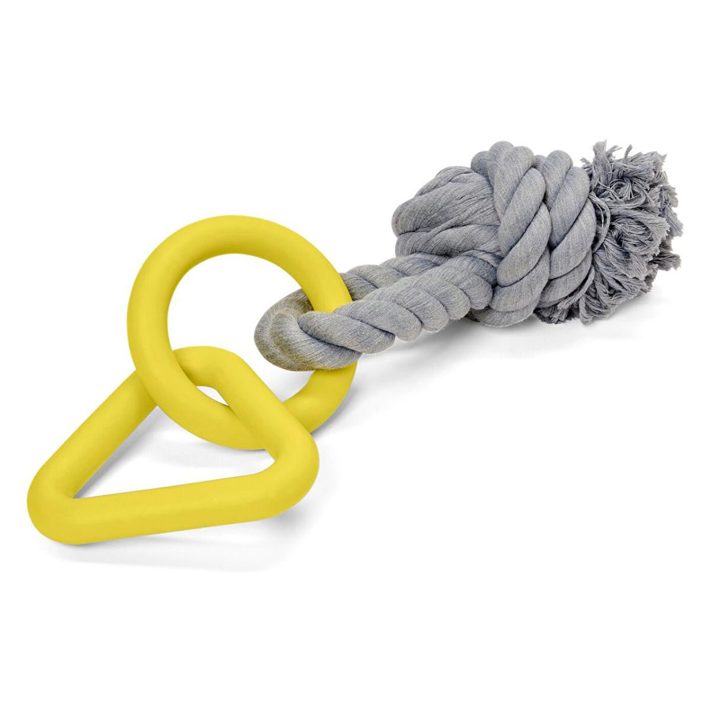 Fırlatma ve çiğneme oyuncağı Diş dostu malzemeden Çiğnemek için sağlam halkalar Zararlı madde kontrolü yapılmıştır – harici, akredite kuruluşlar tarafından İçerik Renk Halkalar sarı Halat gri Malzeme Halkalar termoplastik elastomer (termoplastik kauçuk) Halat %100 polyester Ölçüler Halkaların çapı yakl. 12 cm Halatın uzunluğu yakl. 25 cm Uyarılar Oyun sırasında evcil hayvanınızı denetleyiniz. Oyuncak değildir. Yemek için uygun değildir. Ürünü zarara karşı sık sık kontrol ediniz. Lütfen paketi saklayınız.