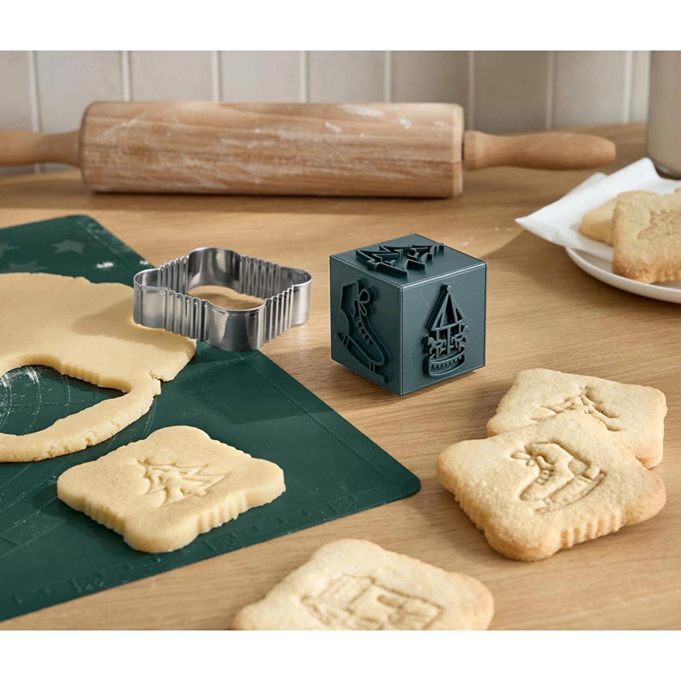 Bisküvi Damgası Seti Bisküvi kesici ve 6 kış motifi için damga Düzgün, zengin çeşitli bisküviler için 6 farklı motif Kaliteli paslanmaz çelikten bisküvi kesici Zararlı madde kontrolü yapılmıştır – harici, akredite kuruluşlar tarafından Renk Kurabiye damgası koyu yeşil Kurabiye kalıbı paslanmaz çelik rengi Malzeme Kurabiye damgası %100 ABS Bisküvi kesici 18/10 paslanmaz çelik Ölçüler Bisküvi damgası yaklaşık 5 x 5 cm Kurabiye kalıbı yaklaşık 7 x 7 cm İçerik Damga ve kurabiye kalıbı dahil Kullanım Uyarıları Bulaşık makinesinde yıkanabilir