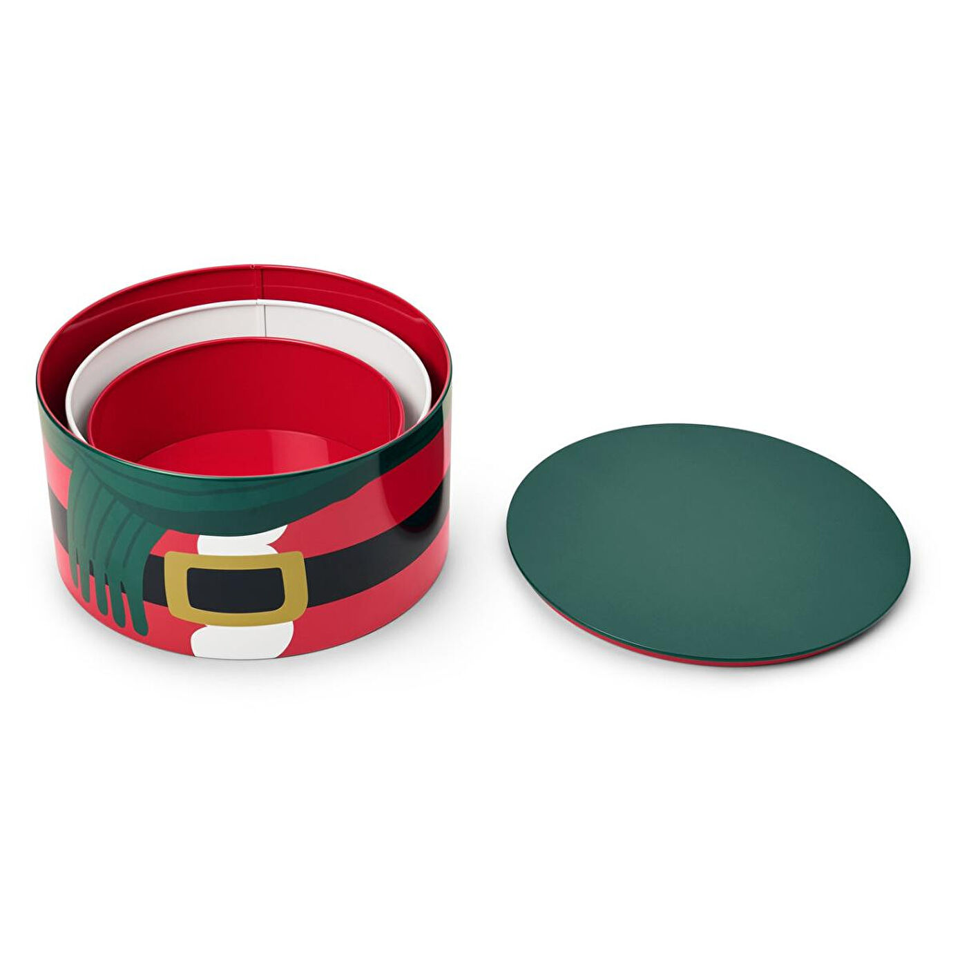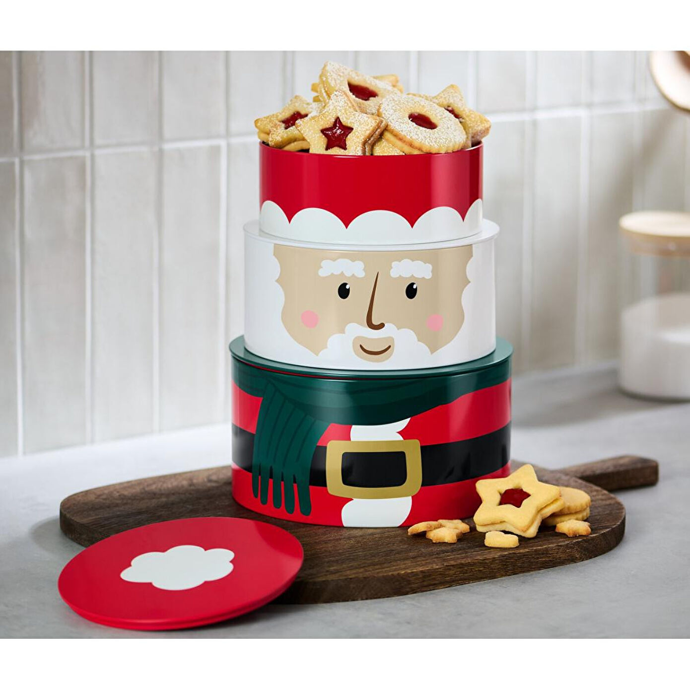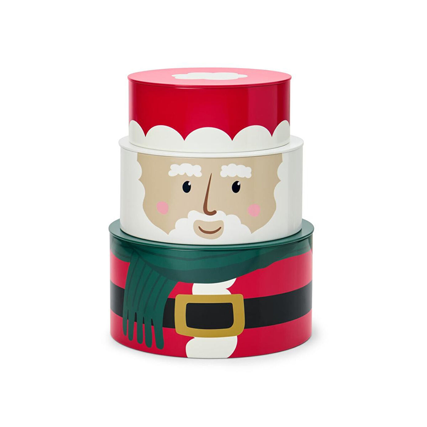 3 Adet Noel Motifli Kurabiye Kutusu Renk: Çok renkli Noel motifleri Malzeme: Teneke, baskılı Ölçüler: Büyük kutu çapı yakl. 19 cm, yüksekliği yakl. 10 cmOrta kutu çapı yakl. 17 cm, yüksekliği yakl. 8 cmKüçük kutu çapı yakl. 15 cm, yüksekliği yakl. 6 cmToplam yüksekliği yakl. 24 cm, çapı yakl. 19 cm Kurabiyeler daha uzun süre taze kalır|Kurabiye kutuları birleştirildiğinde Noel Baba ortaya çıkar|3 farklı ebattan oluşan set|Kullanılmadığında iç içe konularak yer kaplamadan saklanabilir