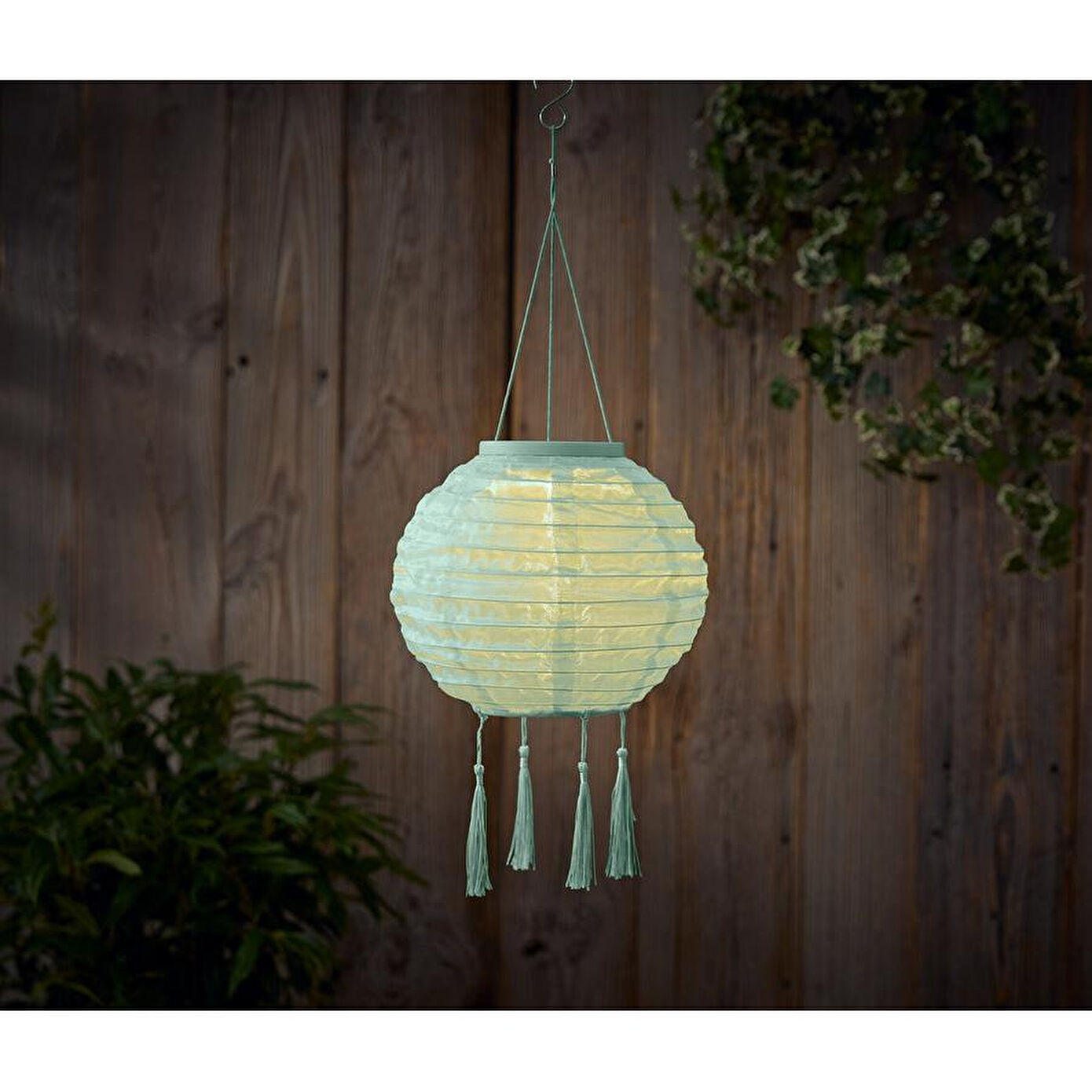 Dekoratif püsküllü Boho tarzı Kaliteli polyesterden Piller dahildir Entegre LED – ışık rengi sıcak beyaz Zamanlayıcı fonksiyonlu: 6 saat sonra otomatik kapanır, 18 saat sonra tekrar açılır Alt kısmında açma/kapama düğmesi Zararlı madde kontrolü yapılmıştır – harici, akredite kuruluşlar tarafından Renk Yeşil Malzeme %100 polyester Ölçüler Askı ve püsküller dahil toplam yüksekliği yakl. 45 cm Fenerin çapı yakl. 20 cm İçerik 2 adet LR06 (AA) pil ve kullanma kılavuzu dahildir Pil/Akü Çalışma Süresi 1 set pille aydınlatma süresi yakl. 200 saat