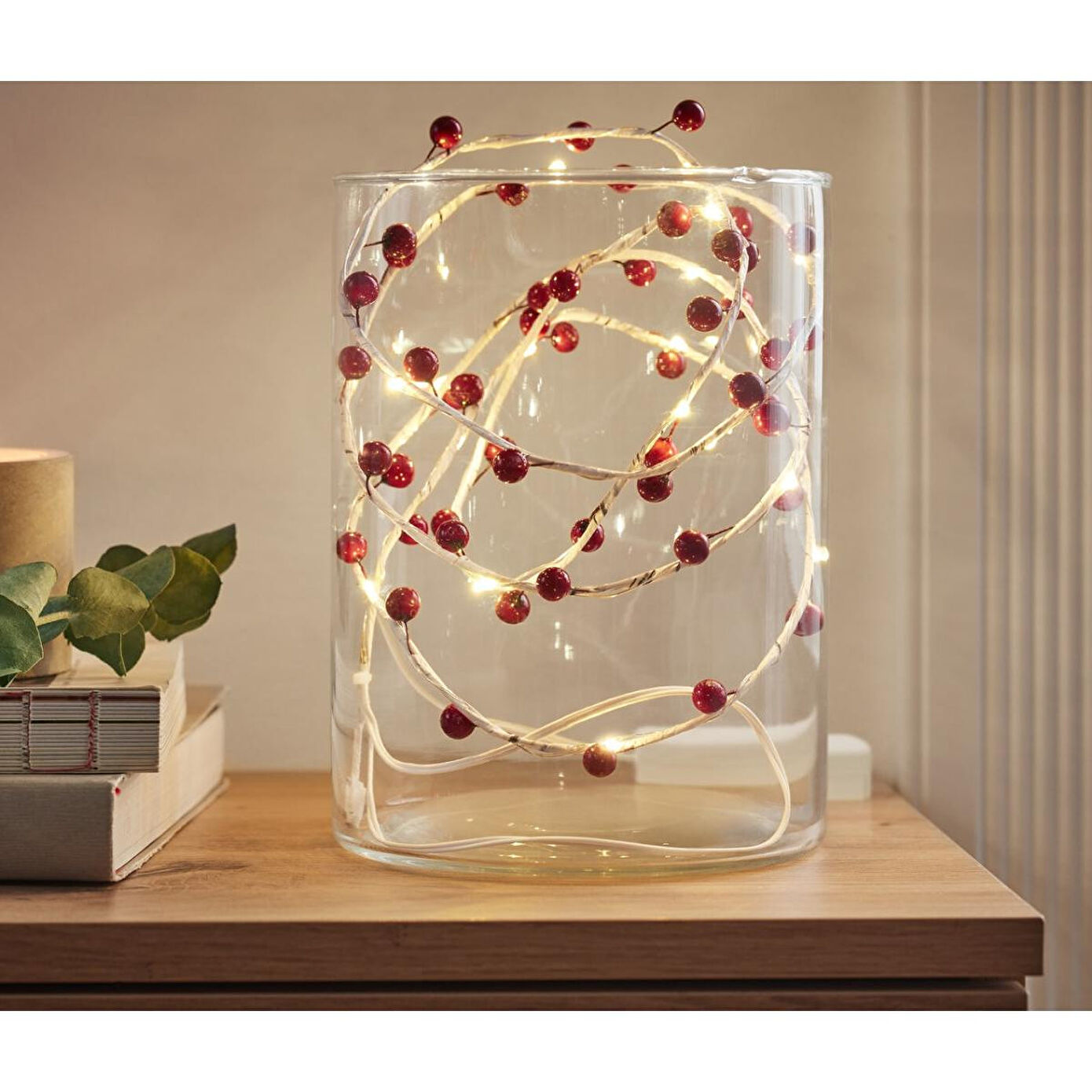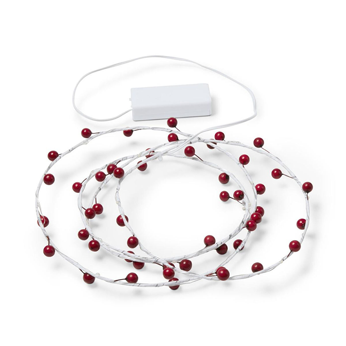 LED Işıklı Dal Renk: Dal beyazMeyveler kırmızı Malzeme: Dal metal ve kağıtMeyveler plastikPil yuvası %100 akrilonitril bütadien stiren kopolimer Ölçüler: Uzunluğu yakl. 200 cmMeyvelerin her biri Ø yakl. 8 mmBağlantı kablosu uzunluğu yakl. 50 cm İçerik/Aksesuar: 2 adet LR06 (AA) pil ve kullanma kılavuzu ile birlikte Pil/Akü Çalışma Süresi: 1 pil seti ile aydınlatma süresi yakl. 230 saat 20 adet mikro LED'li – ışık rengi sıcak beyaz|İç mekanlar için uygun|Bükülebilir tel sayesinde isteğe göre süslenebilir – ör. masa üstünde çelenk olarak, cam kavanoz içinde veya balkonda|50 adet kırmızı meyve tanesi|Zamanlayıcı fonksiyonlu: 6 saat sonra otomatik olarak kapanır, 18 saat sonra tekrar açılır