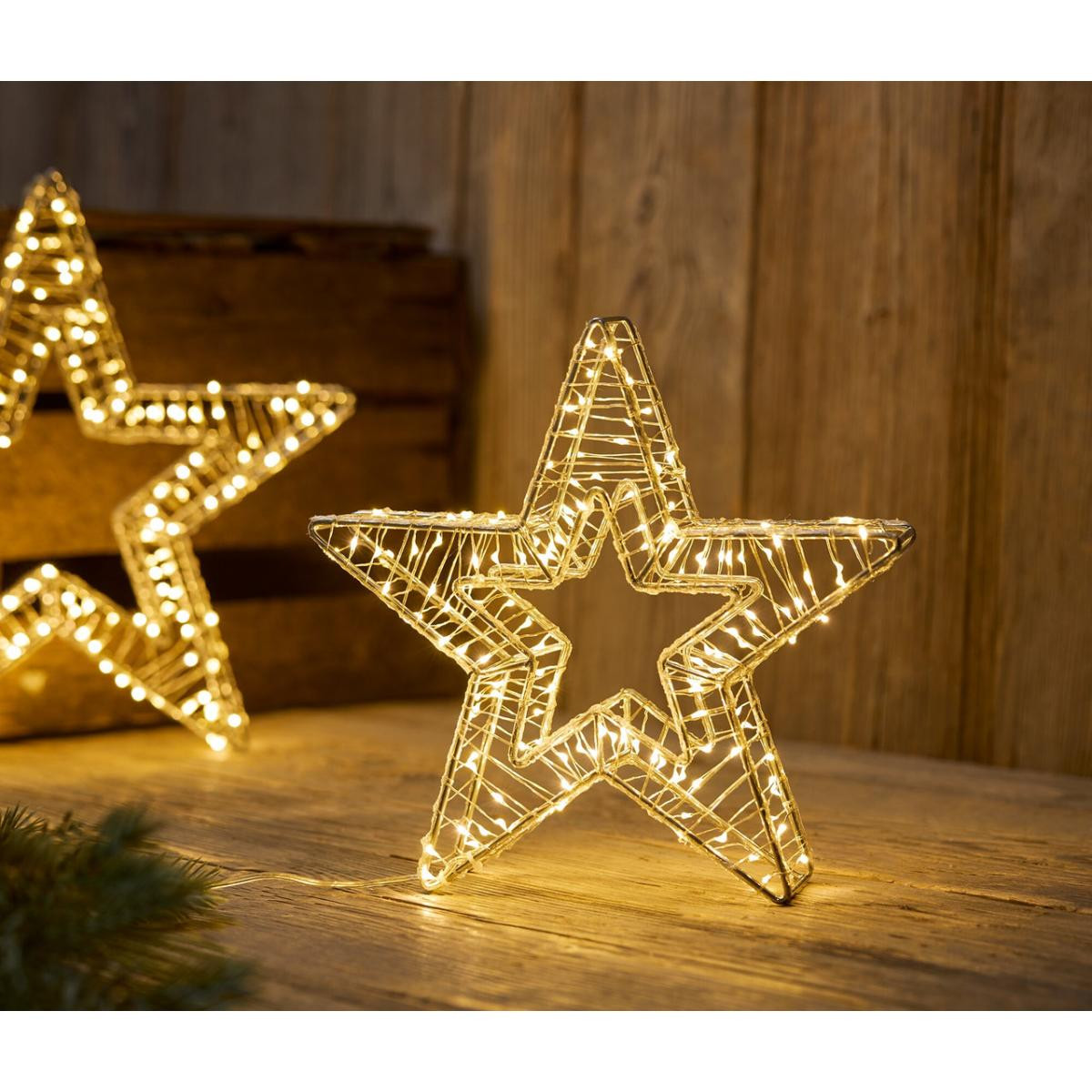 Led Yıldız, 3D, Outdoor, küçük Hoş bir ambiyans için etrafına sıkıca sarılı LED'ler içeren metal yıldız 150 adet LED'li – ışık rengi sıcak beyaz Zamanlayıcı fonksiyonlu: 6 saat sonra otomatik kapanır, 18 saat sonra tekrar açılır İç ve dış mekanlar için uygundur Elektrik adaptörü ve 5 m elektrik kablosu dahildir Zararlı madde kontrolü yapılmıştır – harici, akredite kuruluşlar tarafından Renk Gümüş rengi Elektrik adaptörü siyah Kablo saydam Malzeme Metal ve plastik Ölçüler Çapı yakl. 25 cm Derinlik yakl. 5 cm Kablo uzunluğu yakl. 5 m İçerik Elektrik adaptörü ve kullanma kılavuzu dahildir
