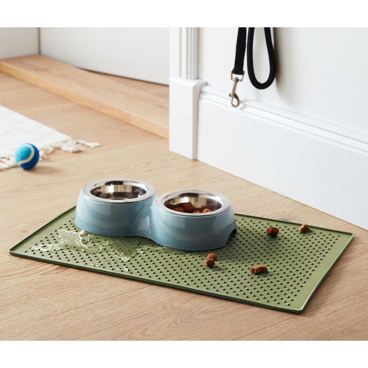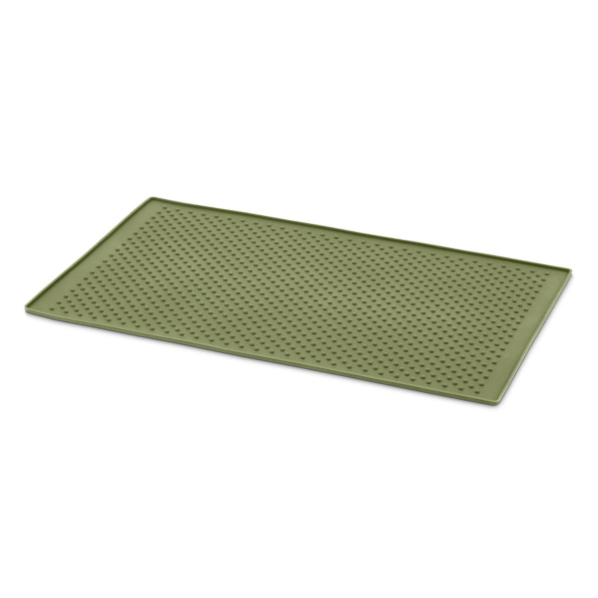 Mama Kabı Altlığı Renk: Zeytin yeşili Malzeme: %100 silikon Ölçüler: yakl. 44 x 28,5 cmKenar yüksekliği yakl. 5 mmMalzeme kalınlığı yakl. 2 mm Ağırlık: yakl. 330 g Kaydırmaz – mama kabının sabit durması için|Ayakkabılar için kir tutucu paspas olarak da kullanılabilir|Zemin kirlenmez|Hafif yüksek kenarı mamanın dağılmasını önler|Isıya ve soğuğa dayanıklı silikondan