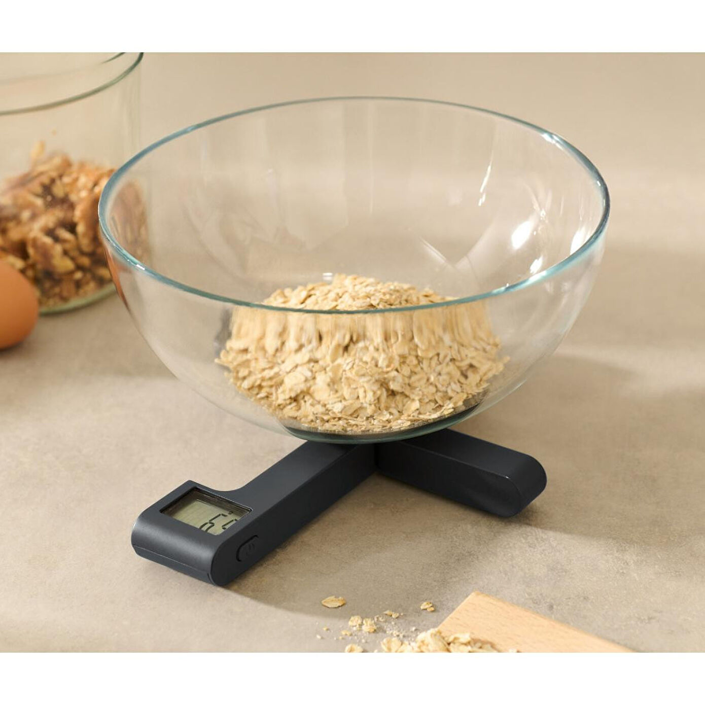 Kompakt, dijital ve son derece hassas Aşırı ağırlık alarmlı, kolay okunabilir LCD ekran Dara alma fonksiyonu ekleme ve tartma fonksiyonları içindir, böylece tarifi yaparken birçok malzeme aynı kap içinde tartılabilir Kolay saklanabilir 5 g'dan 5.000 g'a kadar 1 g'lık tartım artışlarıyla doğru ölçüm 60 saniye sonra otomatik kapanır Şu birimlerde tartar/ölçer: g, ml, fl. oz, lb oz Katlanmış halde G x Y x D yakl. 21 x 2 x 4 cm El altında, yer kaplamadan saklamak için duvar askısı Zararlı madde kontrolü yapılmıştır – harici, akredite kuruluşlar tarafından İçerik Renk Cool grey Ölçüler Açık halde G x Y x D yakl. 21 x 2 x 7,5 cm Ekran yakl. 3 x 2 cm İçerik Pil dahildir (CR2032) Taşıma Kuvveti Maks. 5 kg Güç 3 V