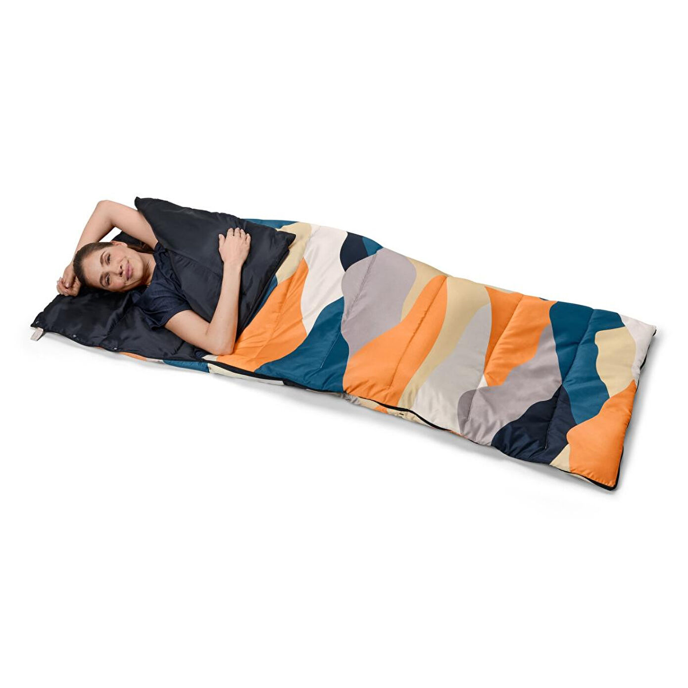 4'ü 1 Arada Yorgan Uyku Tulumu Renk: Tamamı bej-turuncu-mavi baskılı Malzeme: Dışı %100 polyesterİçi %100 polyester (mikrofiber) Ölçüler: Yakl. 80 x 190 cm Panço, uyku tulumu, yorgan veya yastık olarak kullanılabilir|Panço şeklinde çıtçıtlarla sabitlenebilir|Kılıfında yastık olarak kullanılabilir|Kamp, plaj veya ev için ideal|Sağlam ve temizliği kolay