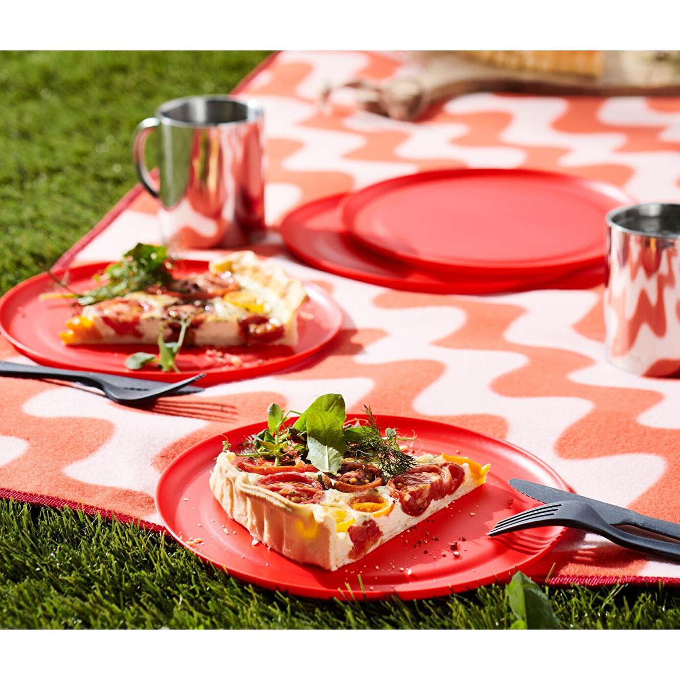 4 Adet Piknik Tabağı Renk: Kırmızı Malzeme: Tabak %100 polipropilenTutacak %100 silikon Ölçüler: Yükseklik 10 mmÇap 216 mmMalzeme kalınlığı 2 mm Kullanım Uyarıları: Mikrodalga veya dondurucuda kullanım için uygun değildir Açık havada ve piknik veya barbekü gezileriniz için ideal |Taşımak için pratik silikon tutacak dahildir |Kırılmaz ve dayanıklı|Bulaşık makinesinde yıkanabilir